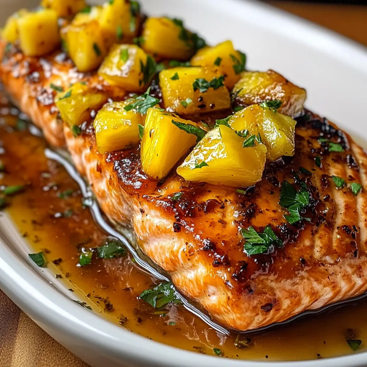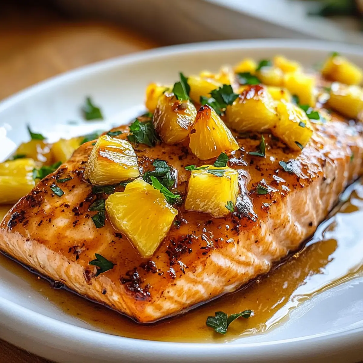 Der Ananas-glasierte Lachs ist ein wahrer Genuss, der sich hervorragend in ein volles Menü einfügen lässt.