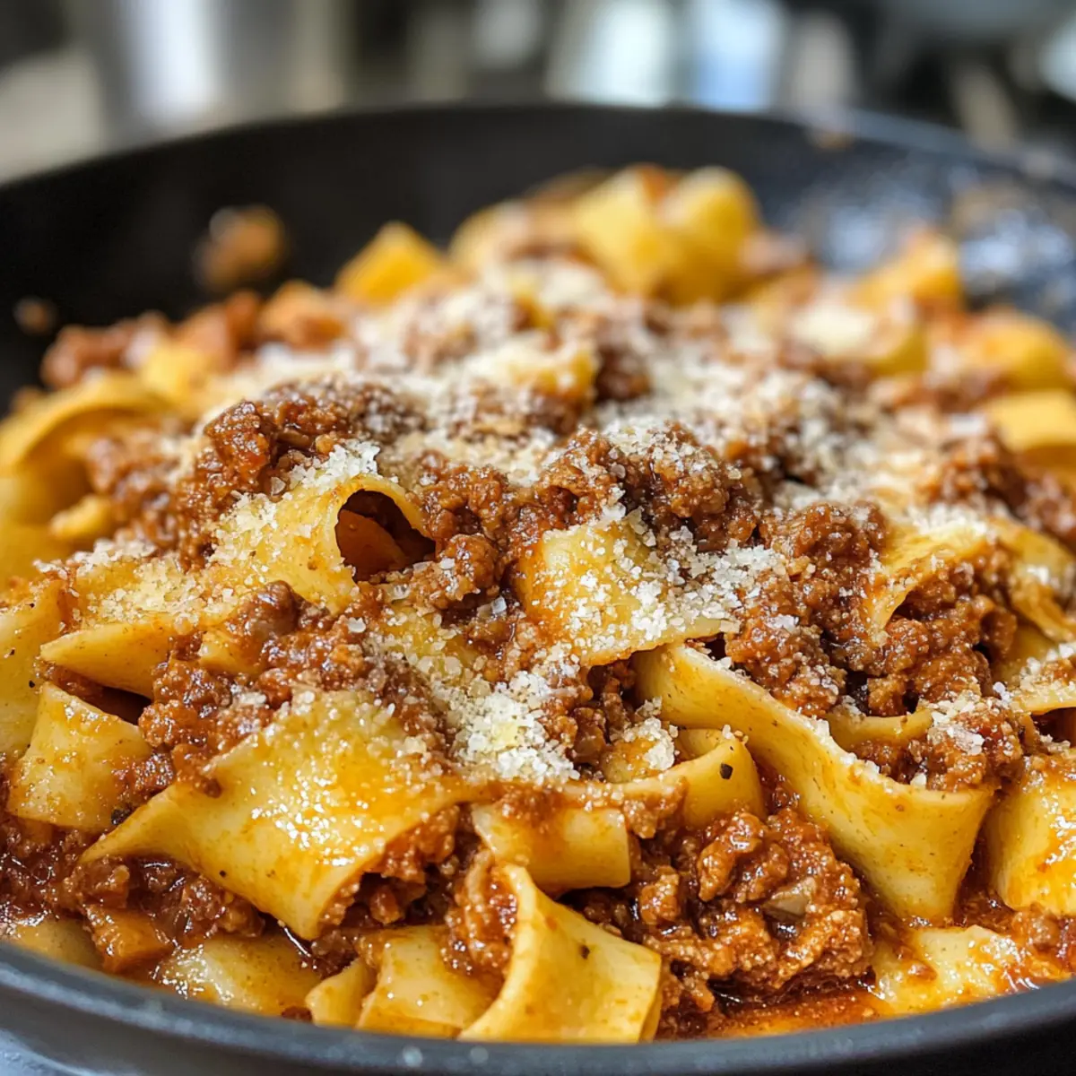 • Langsame Hitze ist der Schlüssel: Lasst die Sauce bei niedriger Hitze köcheln. Geduld zahlt sich aus, um die Aromen der Authentischen Pappardelle Bolognese intensiv zu entfalten.