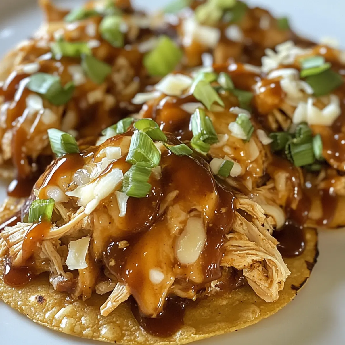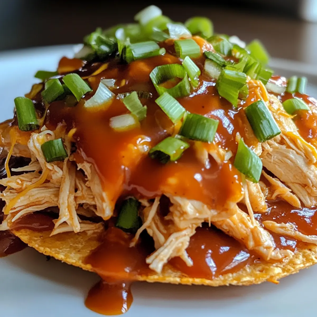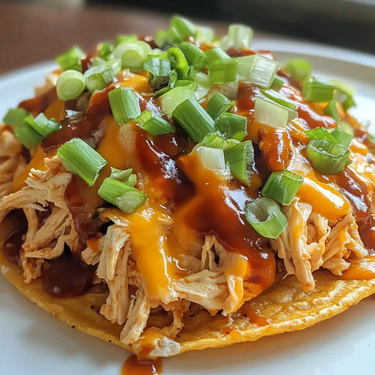 Falls gewünscht, garniere deine Tostadas mit dünn geschnittenen Frühlingszwiebeln. Diese frischen, knackigen Beigaben sorgen für einen herrlichen Kontrast. Serviere die Barbecue Hähnchen Tostadas warm, sodass jeder in den vollen Genuss des herzhaften und köstlichen Geschmacks kommt!