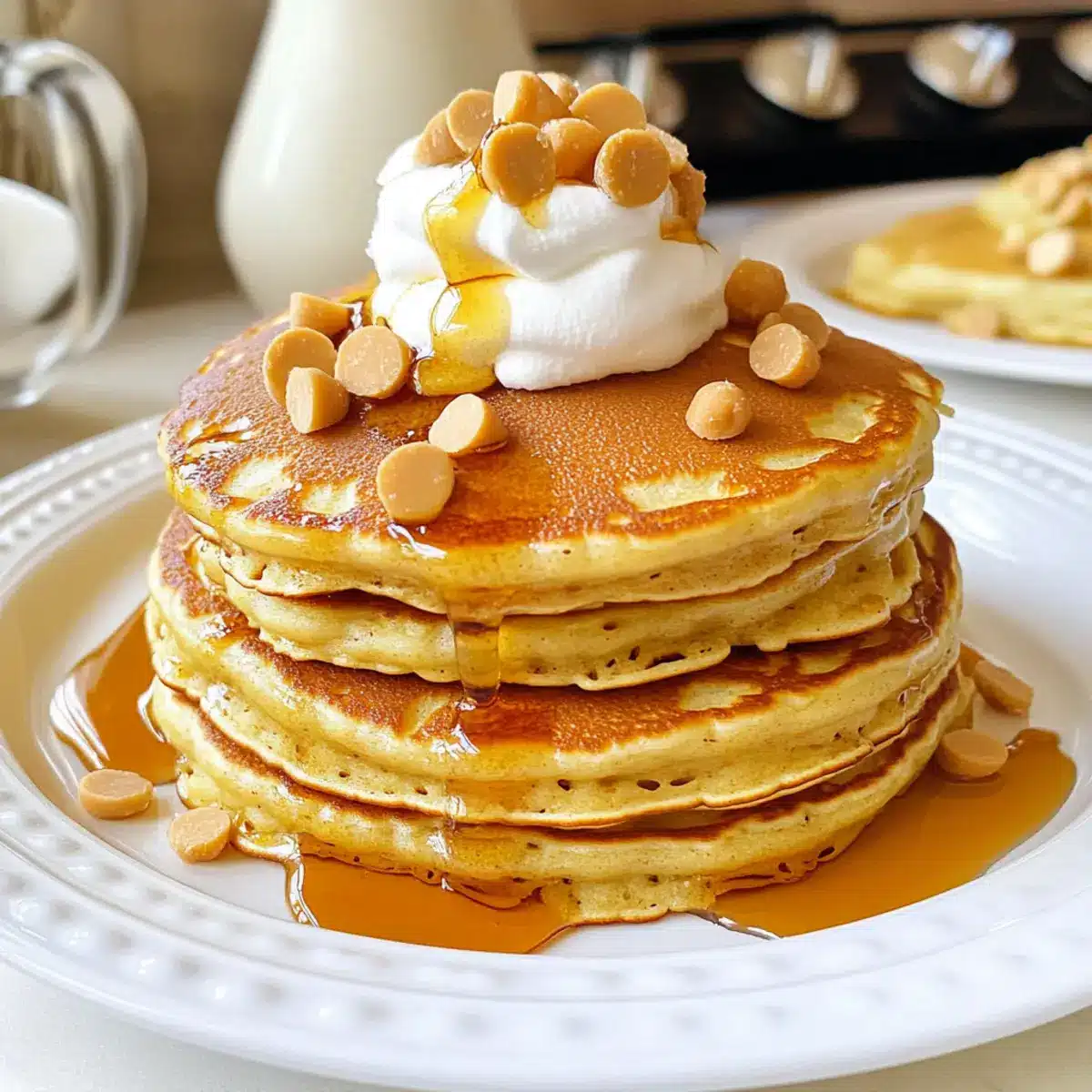 Serviere die Butterbier-Pfannkuchen heiß, garniert mit Schlagsahne und einem zusätzlichen Schuss Butterscotch-Sirup. Die Kombination von Süße und der fluffigen Textur macht jedes Frühstück zu einem magischen Erlebnis.