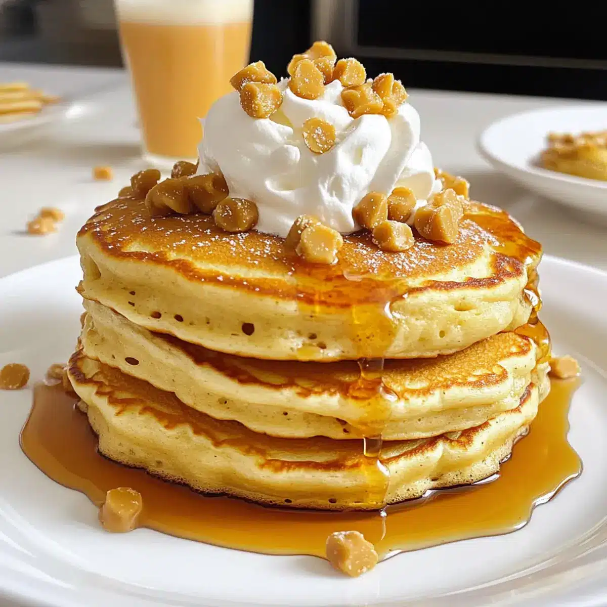 - Serviere die Butterbier-Pfannkuchen heiß, garniert mit einer großzügigen Portion Schlagsahne und extra Butterscotch-Sirup.