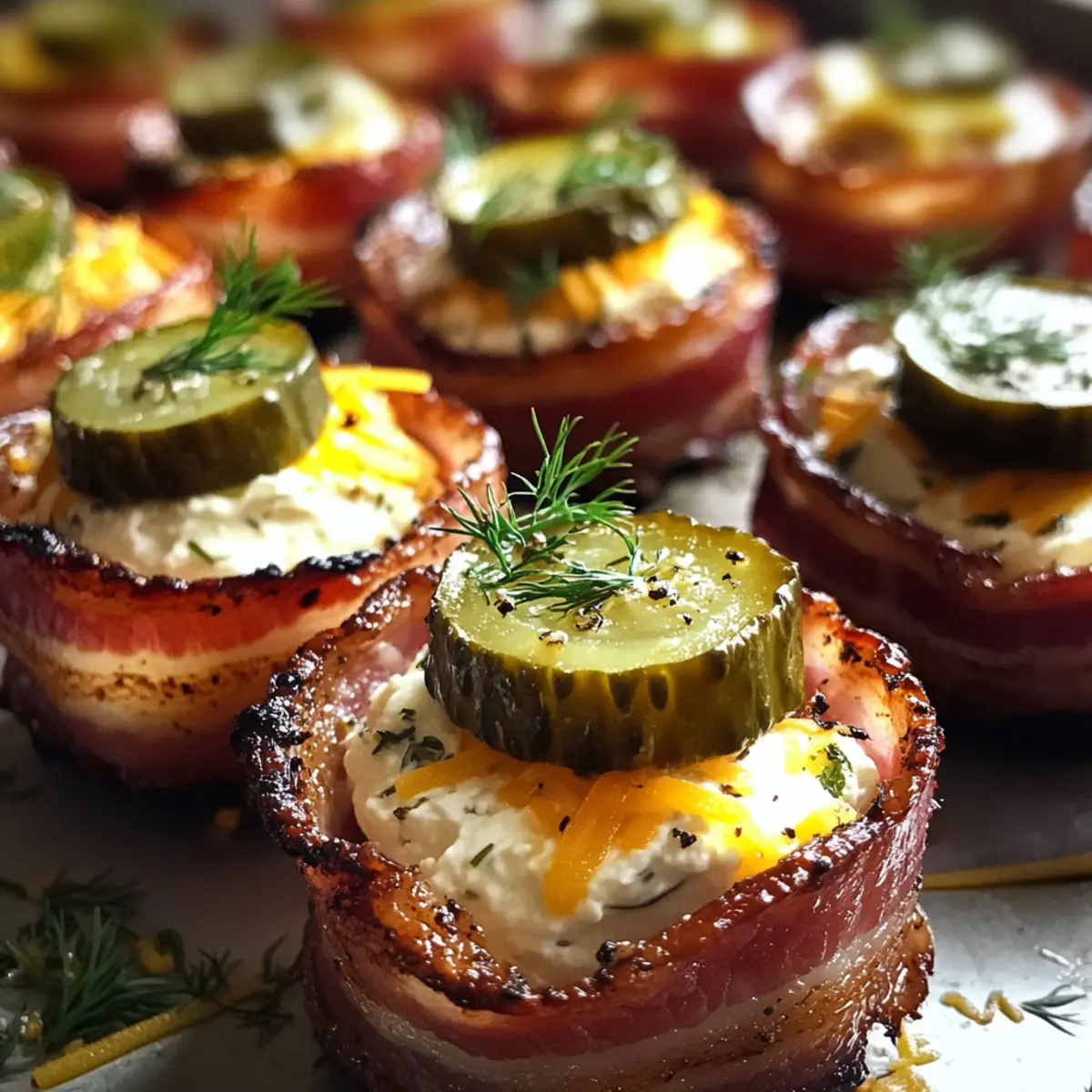 Käse Dill Gewürzgurken Speck Shots für Partys