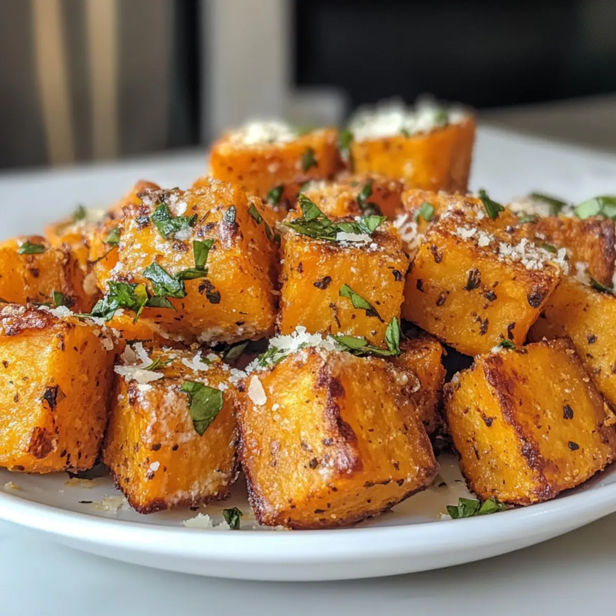Knusprige gebackene Süßkartoffelstücke mit Kräuterbutter