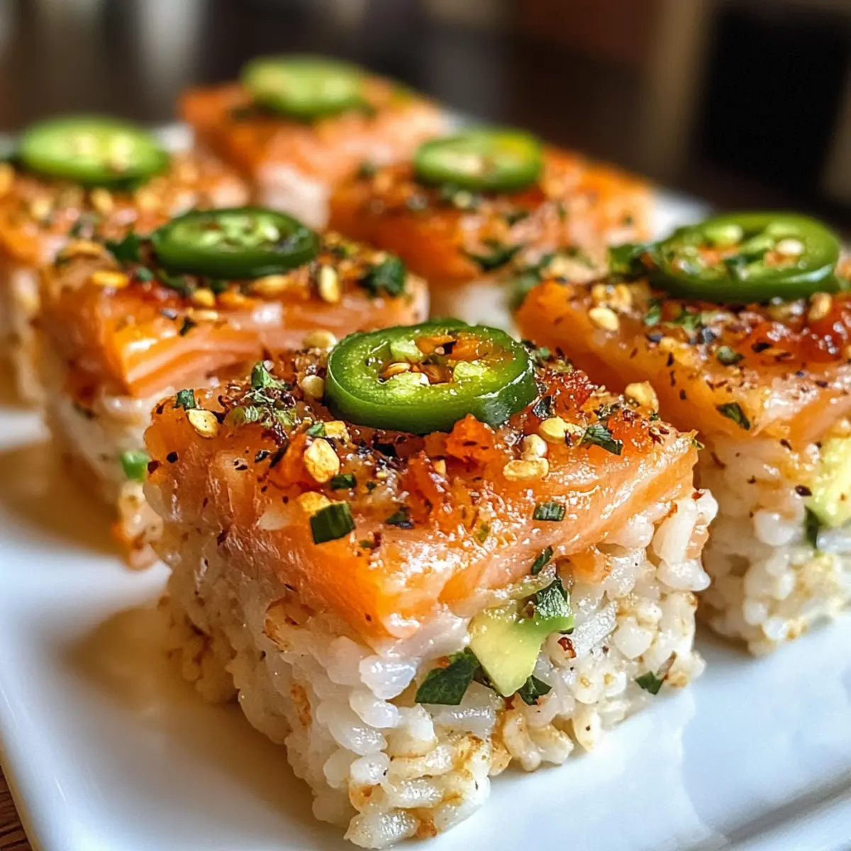 Lachs knuspriger Reis in perfekter Sushi-Form