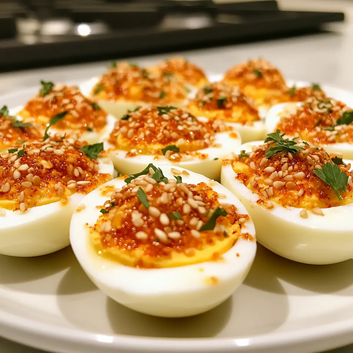 Würzige Chili Knoblauch gefüllte Eier für dein Buffet
