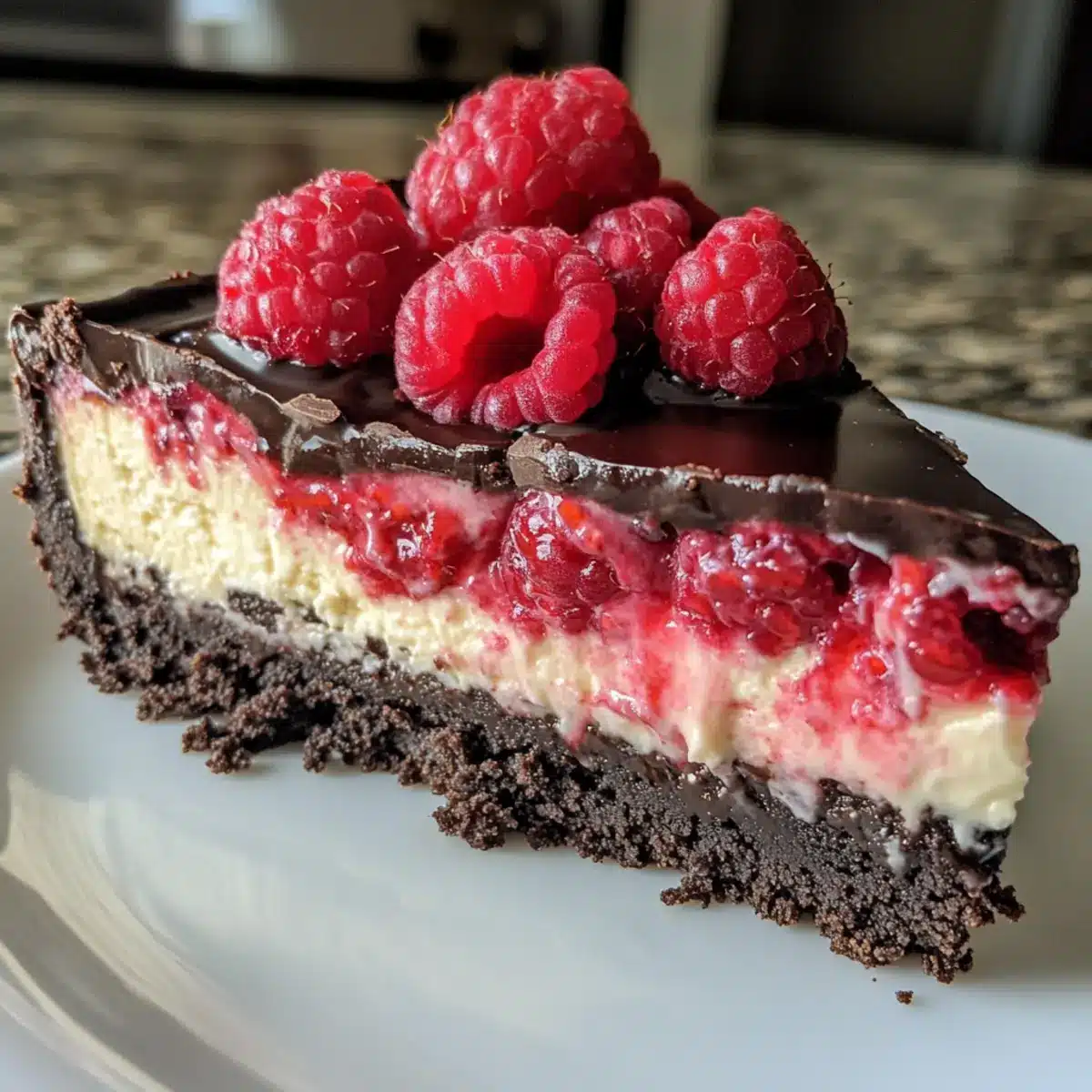 Dunkle Schokoladen-Himbeer-Käsekuchen für Genießer