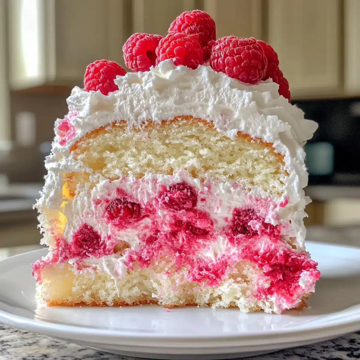 Himbeer-Engelsfoodkuchen für helle Frühlingstage