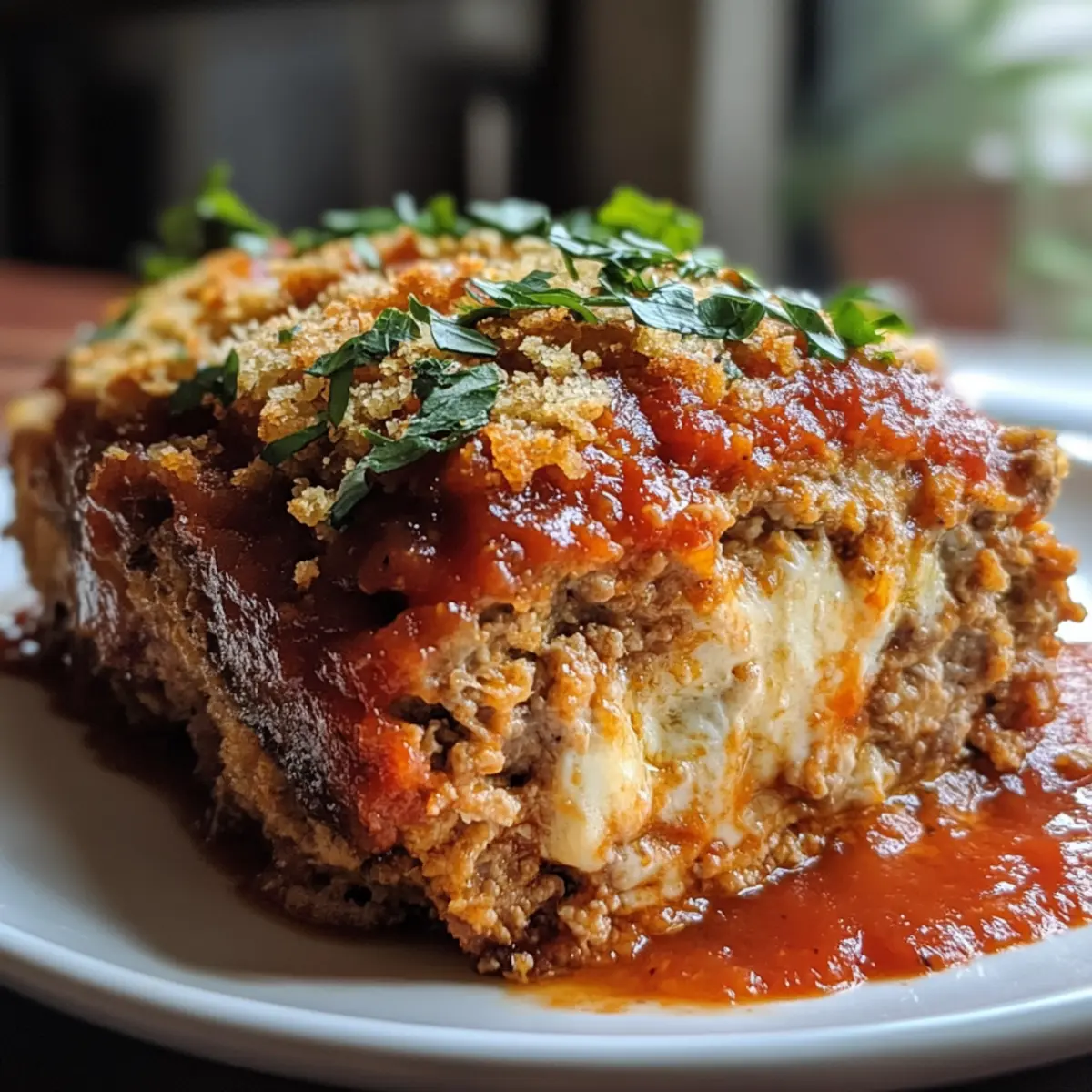 Parmesanhühnchenfleischlaib mit Mozzarellaüberraschung