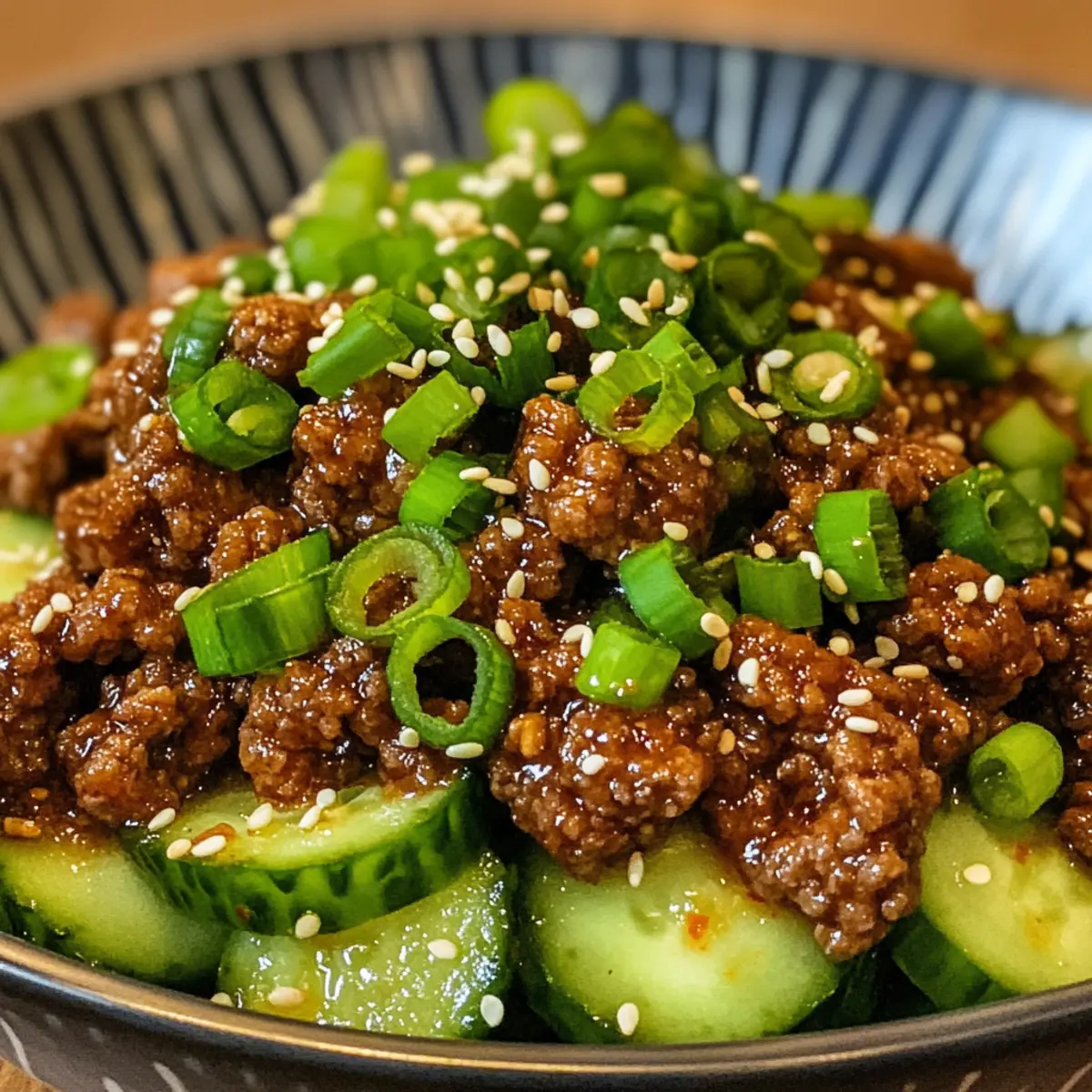 Scharfes Keto Koreanisches Rindfleisch mit Gurkensalat