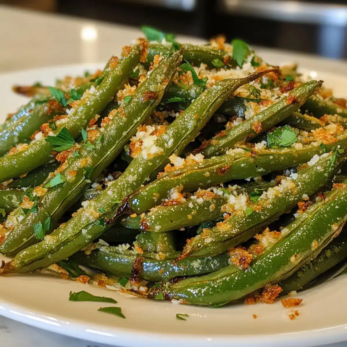 Knoblauch Parmesan geröstete grüne Bohnen leicht gemacht
