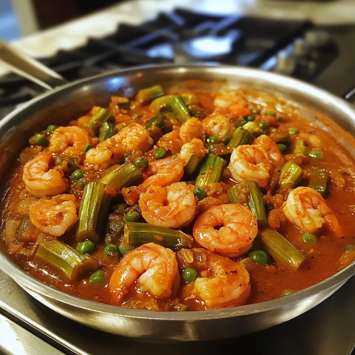 Bedeckte Okra mit Garnelen für ein Wohlfühlessen