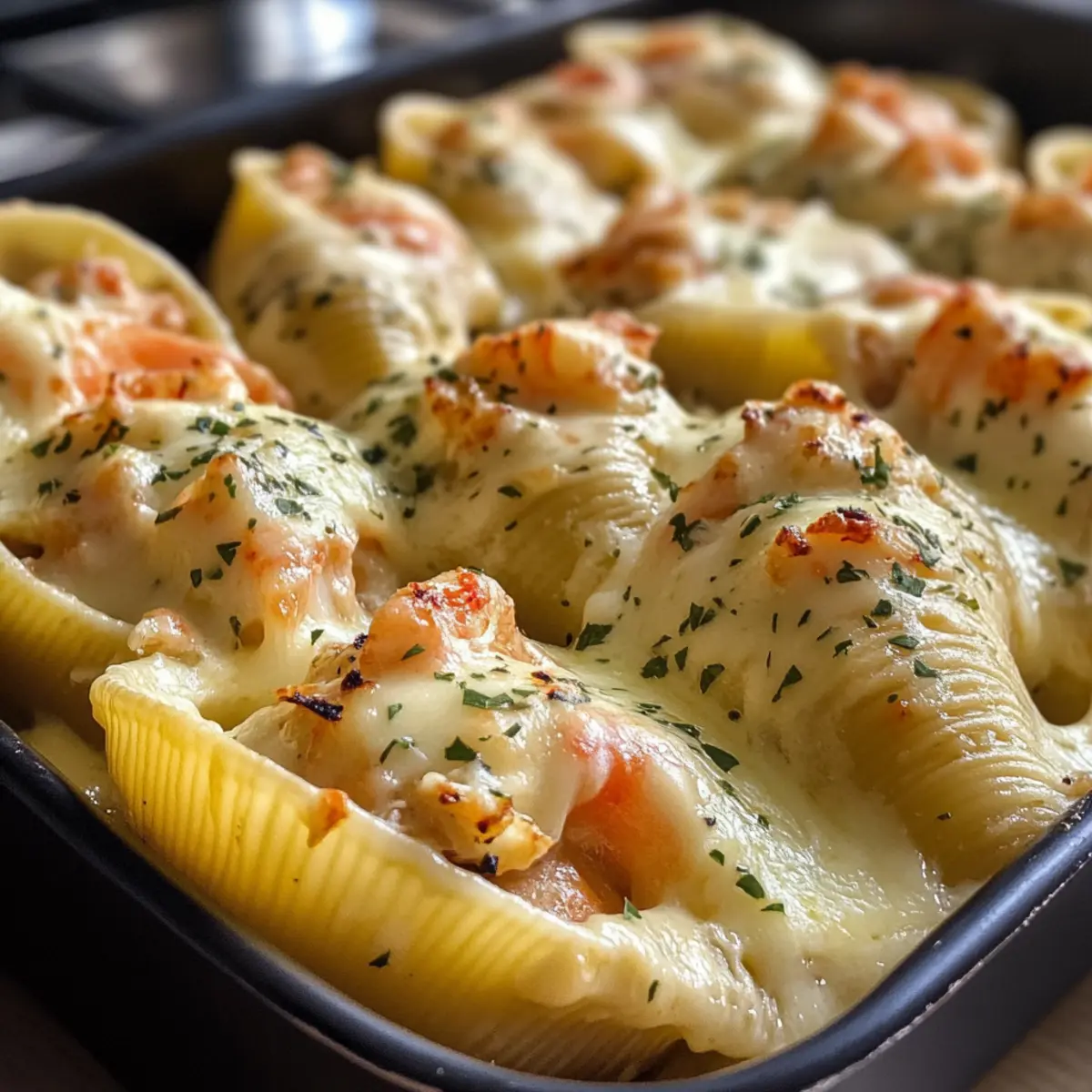 Cremige Meeresfrüchte gefüllte Muscheln für Genießer