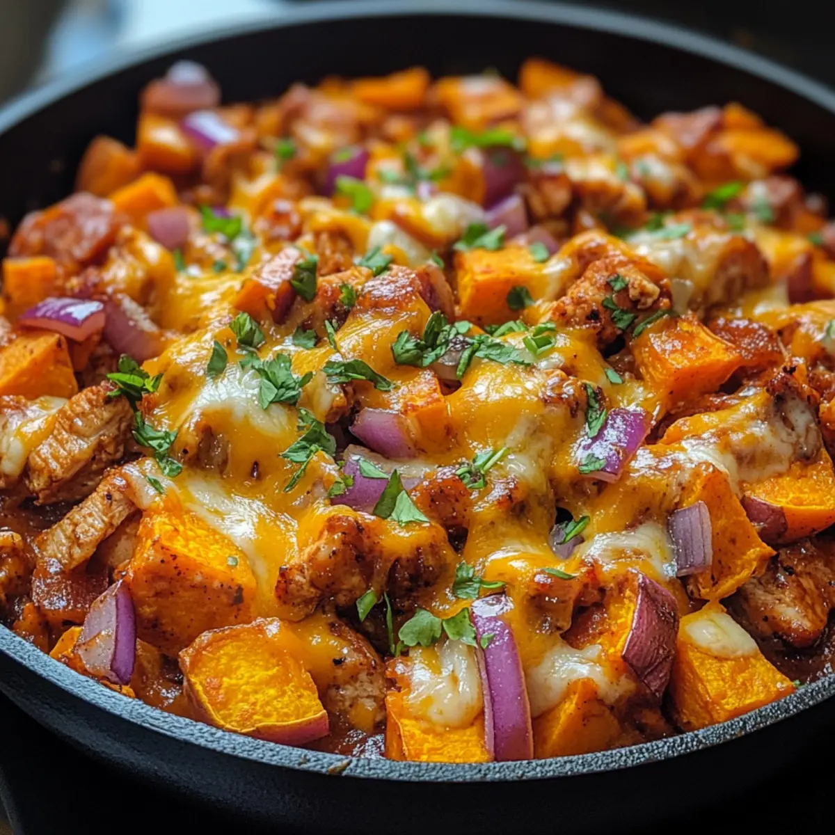 BBQ Hähnchen Süßkartoffel Pfanne für die ganze Familie