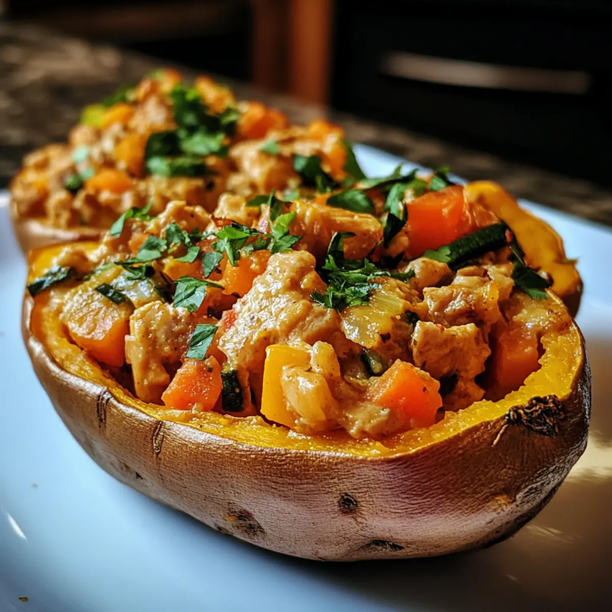 Hühnchen-Topf-Pie gefüllte Süßkartoffeln genießen