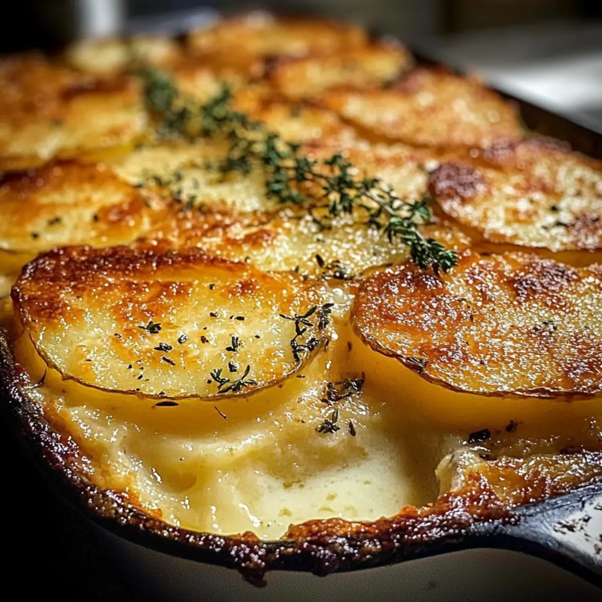 Crispy Parmesan und Gruyere Kartoffelgratin mit Liebe
