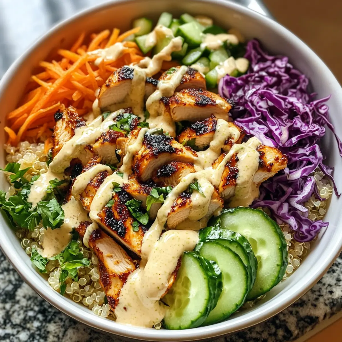 Süßer Chili-Hühnchen-Bowl mit Kokos-Limetten-Drizzle