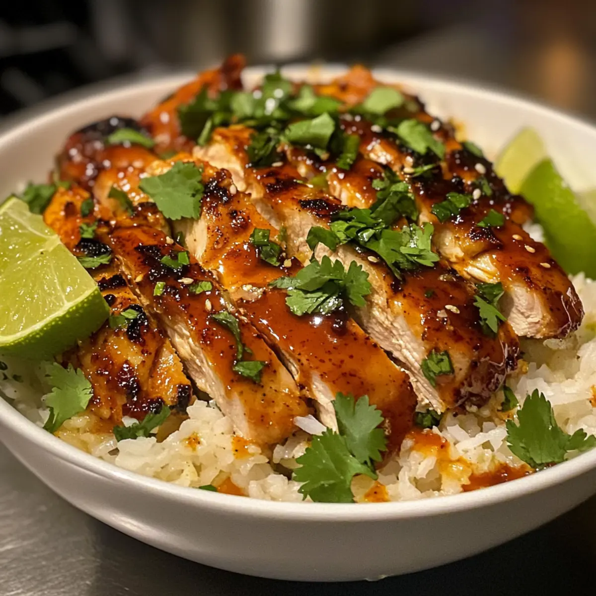 Klebrige Hähnchen-Reisbowl für schnelle Abende