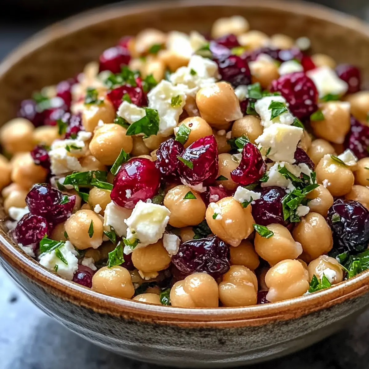 Feta- und Cranberry-Kichererbsensalat mit Zesty-Dressing
