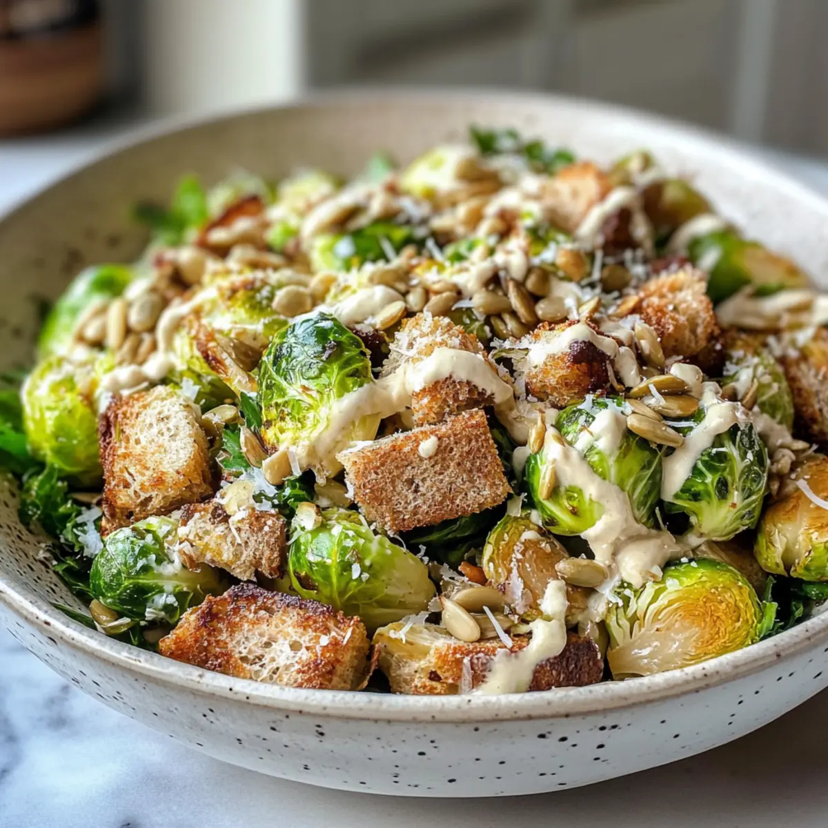 Gerösteter Rosenkohl Caesar Salat mit Tahini Dressing