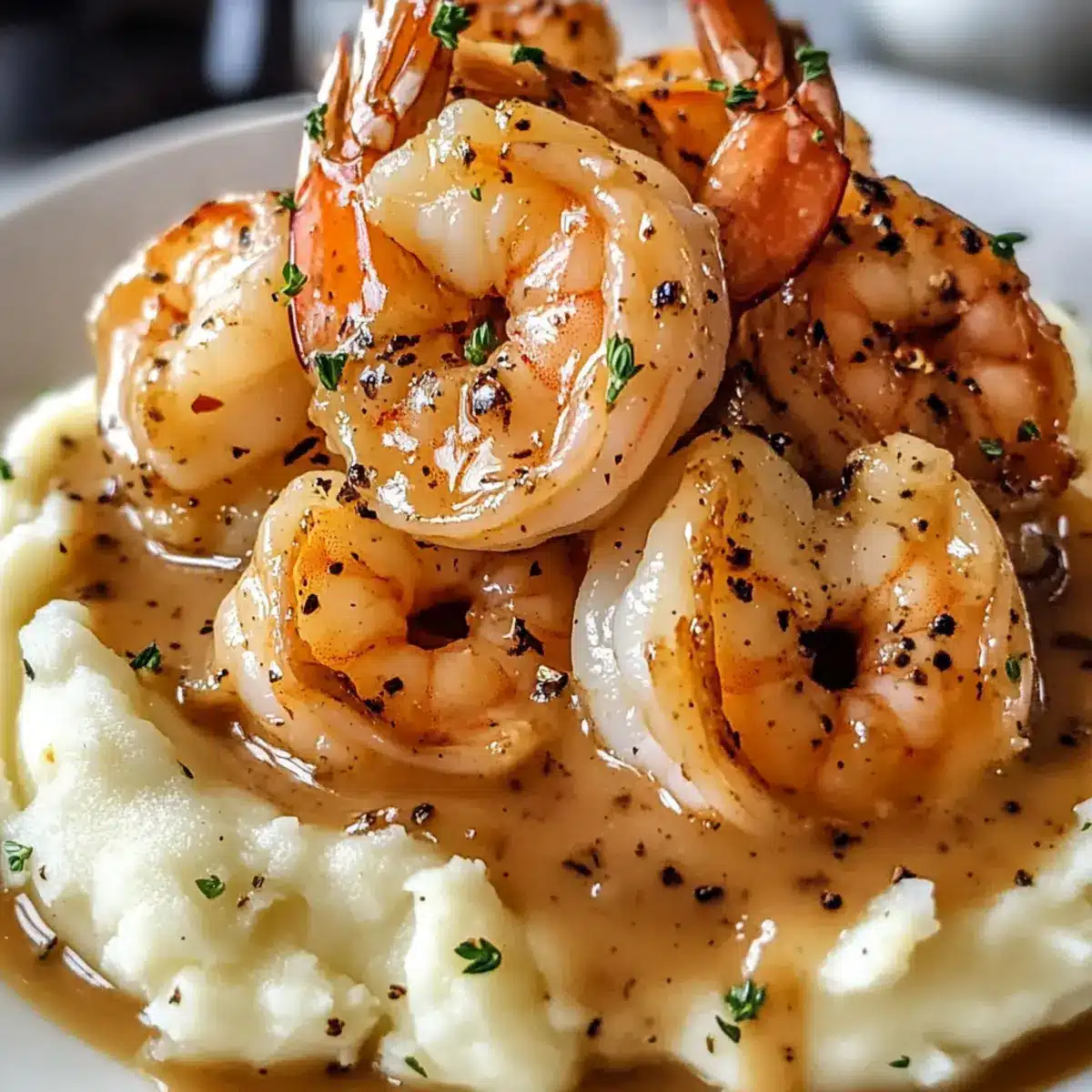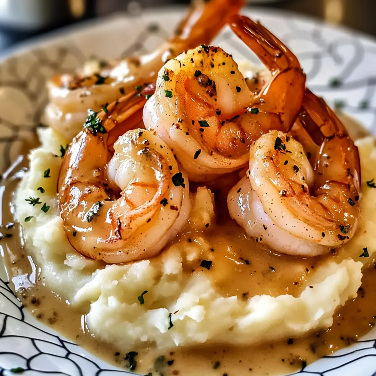 Cremige Knoblauch-Garnelen über Kartoffelpüree genießen
