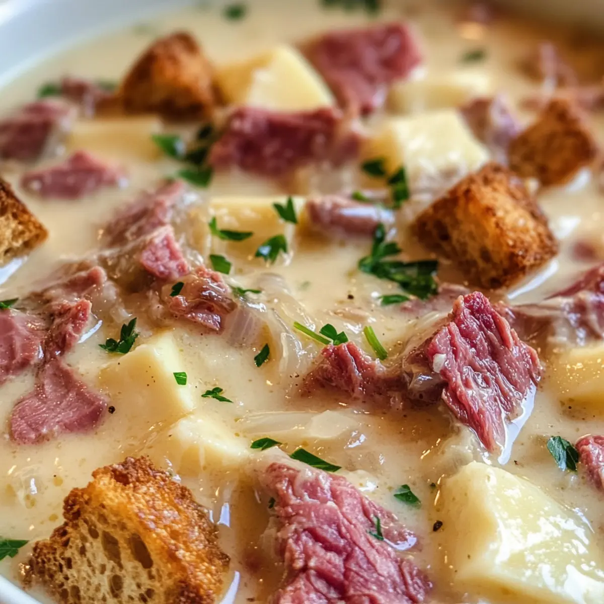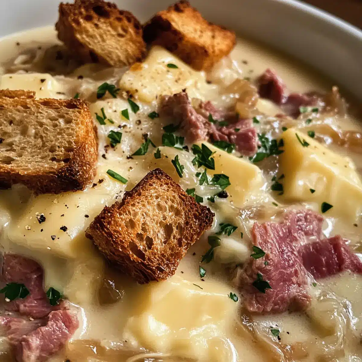 Schritt-für-Schritt-Anleitung für die Cremige Reuben Suppe