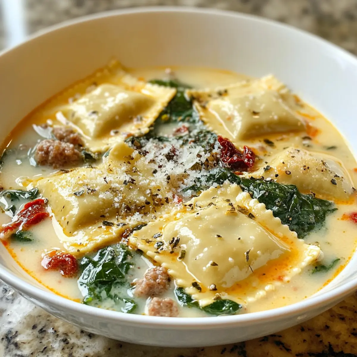 Genieße diese cremige toskanische Ravioli-Suppe als eine perfekte und herzliche Mahlzeit, die sich hervorragend an deine persönlichen Vorlieben anpassen lässt!