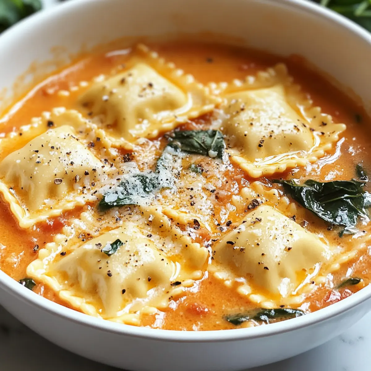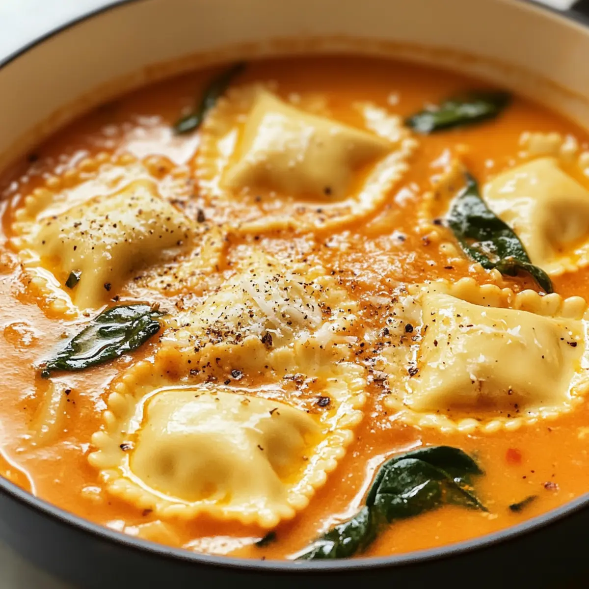 Die Kombination aus zarten Ravioli und einer cremigen Tomatensuppe sorgt für ein unvergessliches Geschmackserlebnis, das sich wunderbar ergänzen lässt.