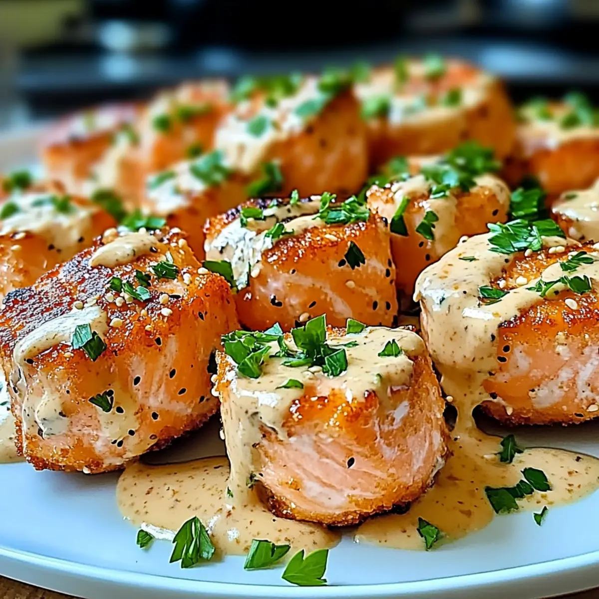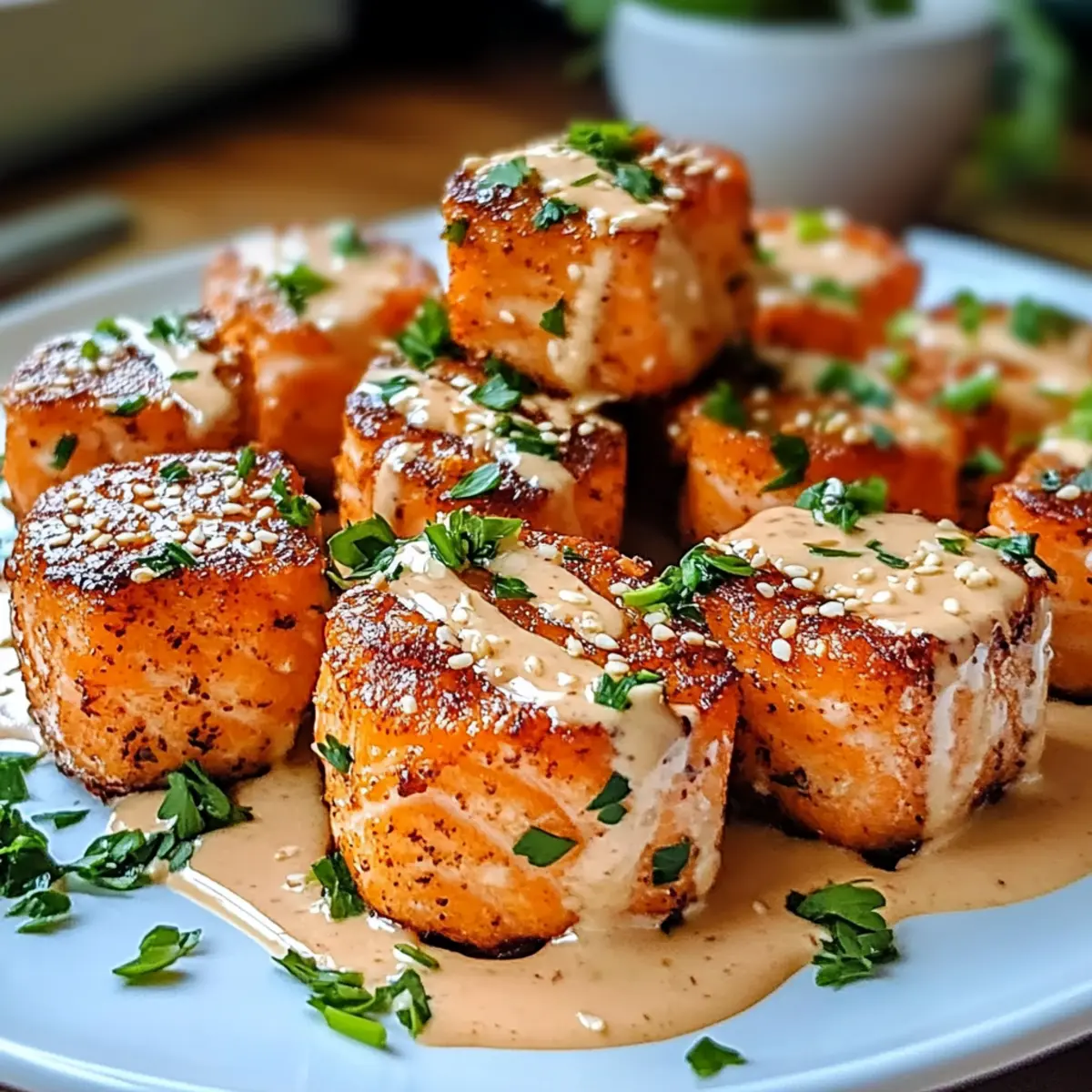 Einzigartiger Genuss: Diese Crispy Bang Bang Lachs Bissen verbinden den köstlichen Geschmack von Lachs mit der perfekten Knusprigkeit.