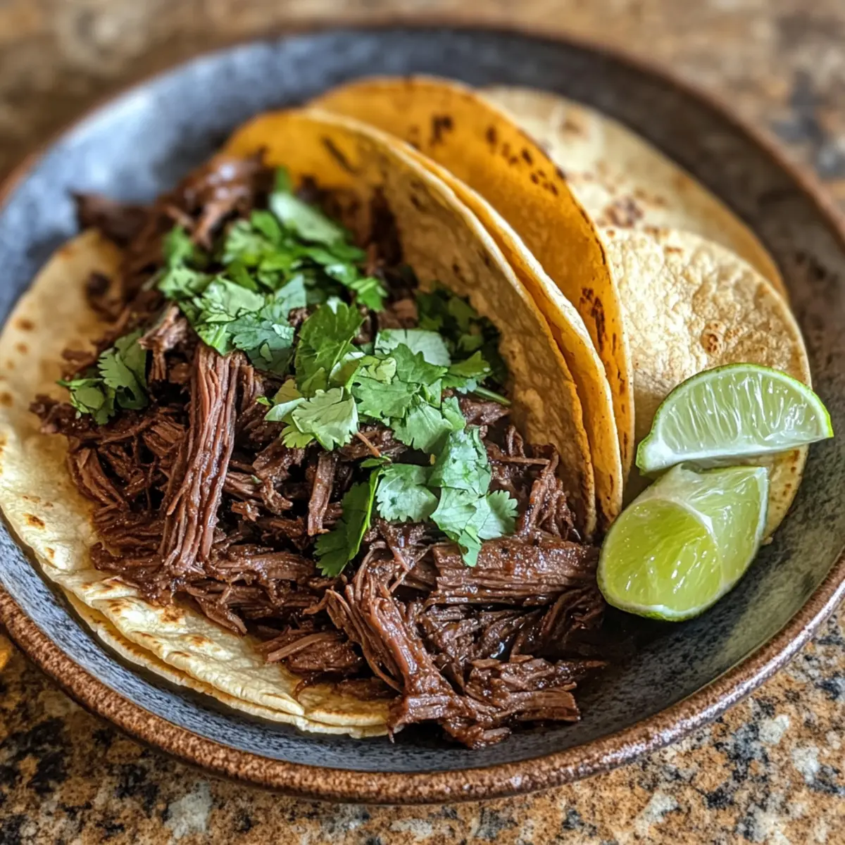 - Warme Tortillas: Perfekt, um das zarte Rindfleisch einzuwickeln; die weiche Textur ergänzt die saftige Füllung. Verfeinere sie mit frischem Koriander und Limettensaft für ein intensives Aroma.
