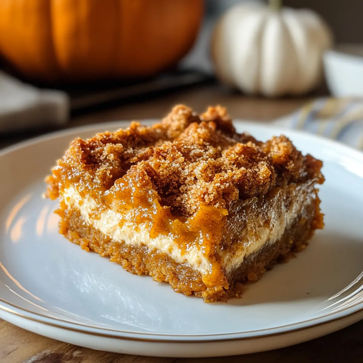 Karamellsauce: Ein feiner Drizzle aus Karamellsauce verleiht dem Dessert eine zusätzliche süße Note und betont den reichhaltigen Kürbisgeschmack.