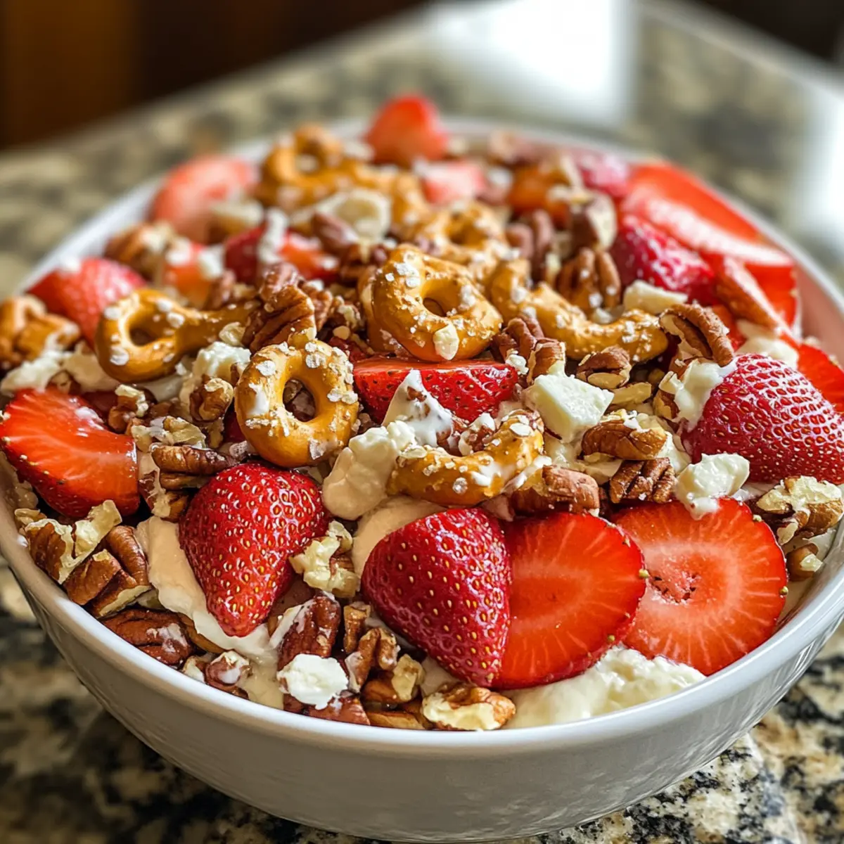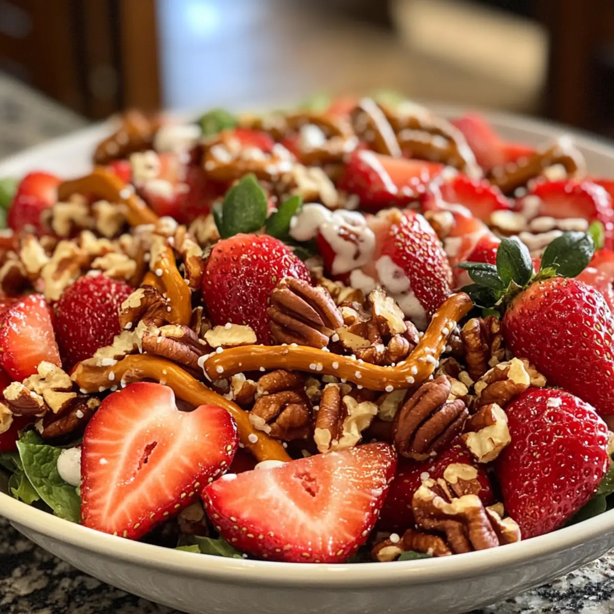 Leicht und gesund: Mit weniger Zucker und frischen Zutaten ist dieser Erdbeer-Cracklesalat eine gesunde Wahl, die dich ohne schlechtes Gewissen genießen lässt!