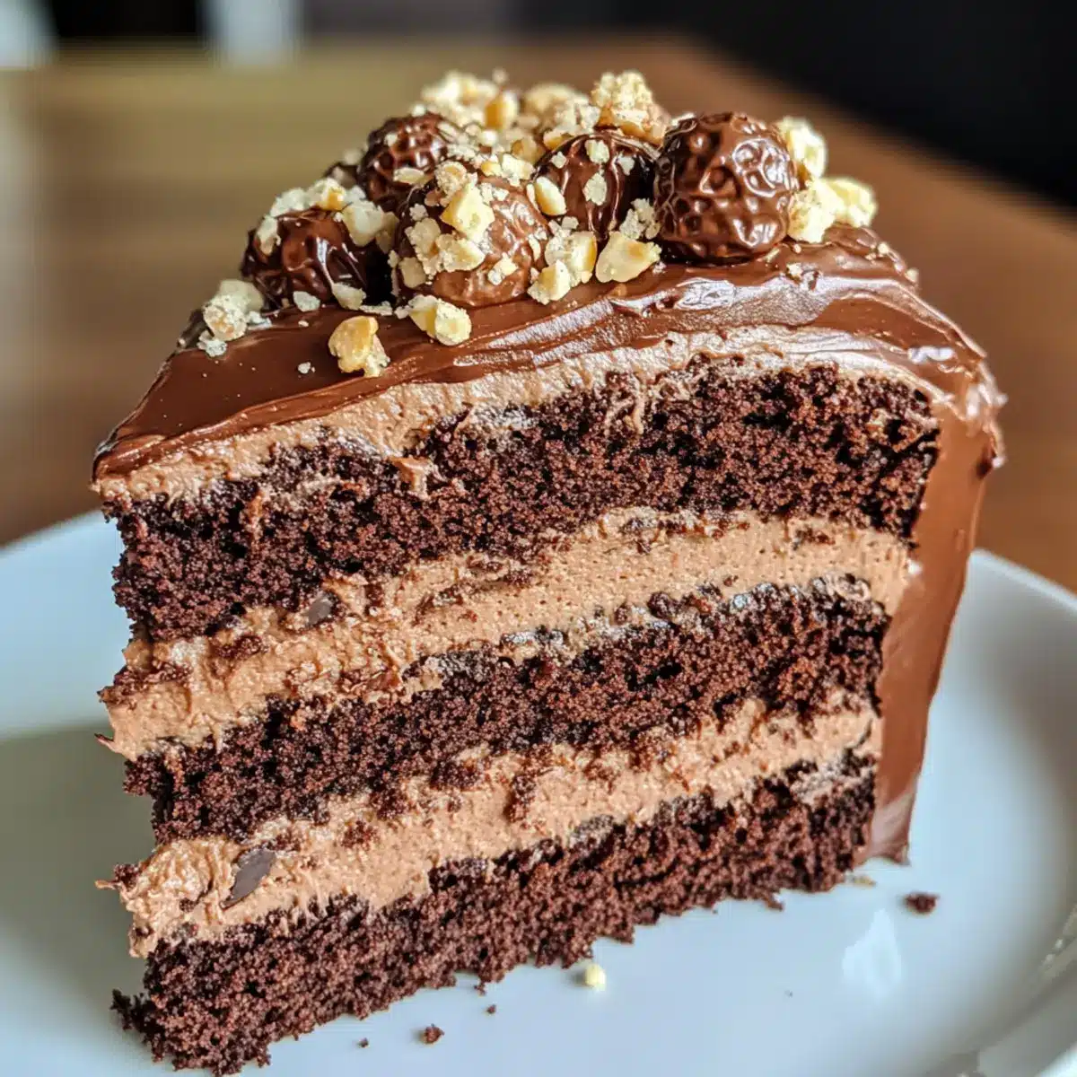 Einen vertrauten Klang hat das Klirren von Tellern, das die Vorfreude auf einen süßen Genuss ankündigt. Heute lade ich dich ein, zusammen mit mir eine ganz besondere Reise in die himmlische Welt des “Gourmet Ferrero Rocher Chocolate Cake mit Nutella Frosting” zu unternehmen. Diese verführerische Torte ist nicht nur ein echter Hingucker, sondern auch ein wahrer Gaumenschmaus. Mit ihren schokoladigen Schichten und dem cremigen Nutella-Frosting wird sie zu einem unbezahlbaren Highlight bei jeder Feier, ganz gleich, ob ein Geburtstag oder einfach ein schöner Nachmittag mit Freunden ansteht. Darüber hinaus ist dieses Rezept ideal für alle, die sich nach etwas Besonderem sehnen, und es lässt sich schnell zubereiten – perfekt für den spontanen Genuss! Bist du bereit, deinen perfekten Kuchen zu kreieren?