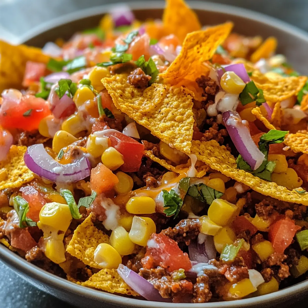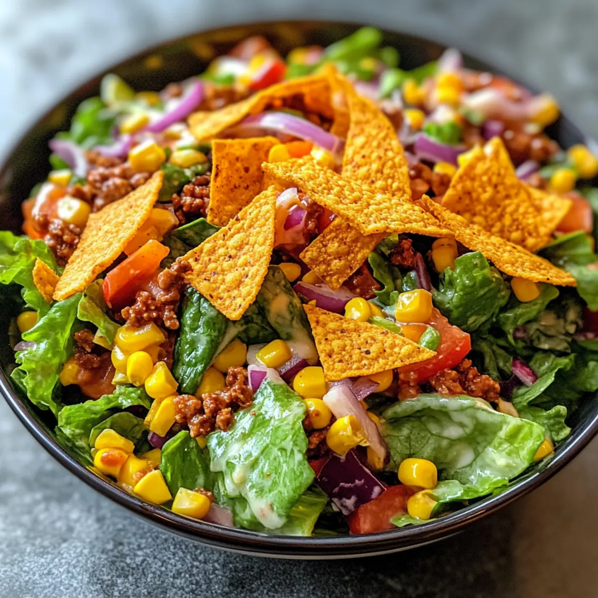 Um die Fritos knusprig zu halten, füge sie erst unmittelbar vor dem Servieren dem Salat hinzu. So verhinderst du, dass sie durch die anderen feuchten Zutaten weich werden und kannst den vollen Crunch genießen!