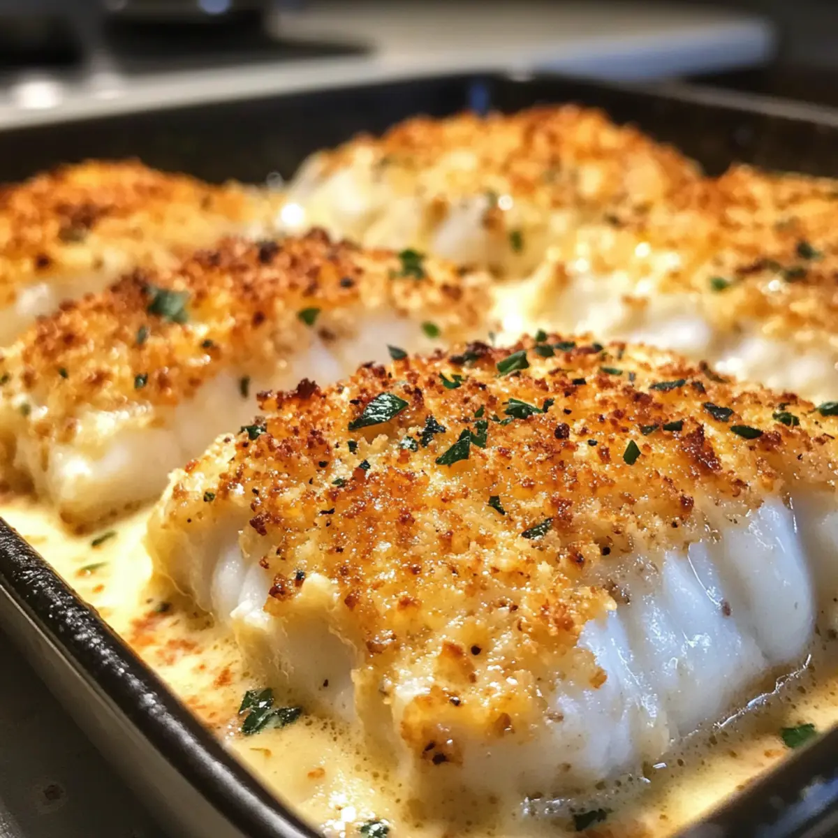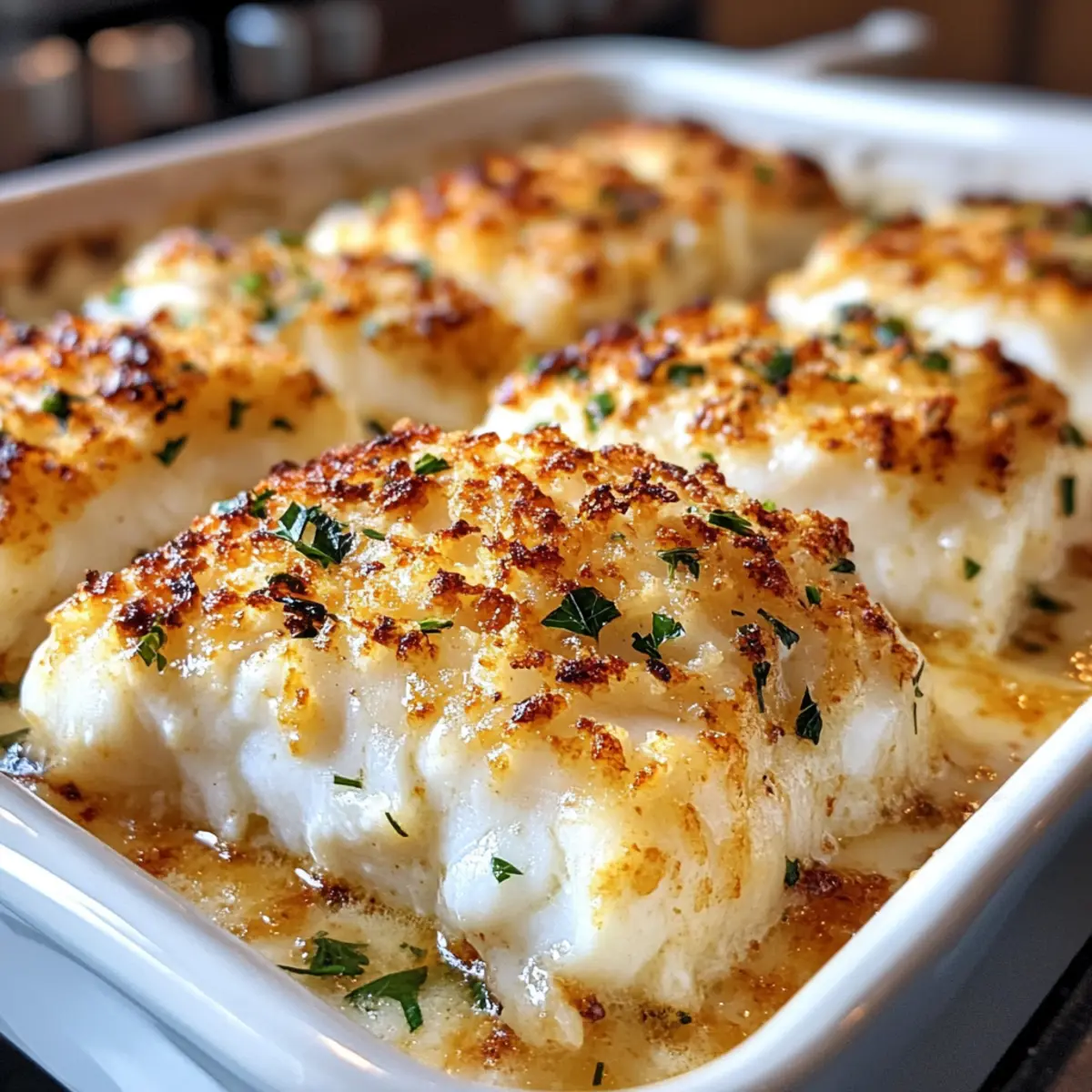 Entdecke die köstliche Verbindung von Backed Kabeljau mit Mayo und Parmesan und lass dich von der Einfachheit und dem Geschmack begeistern!