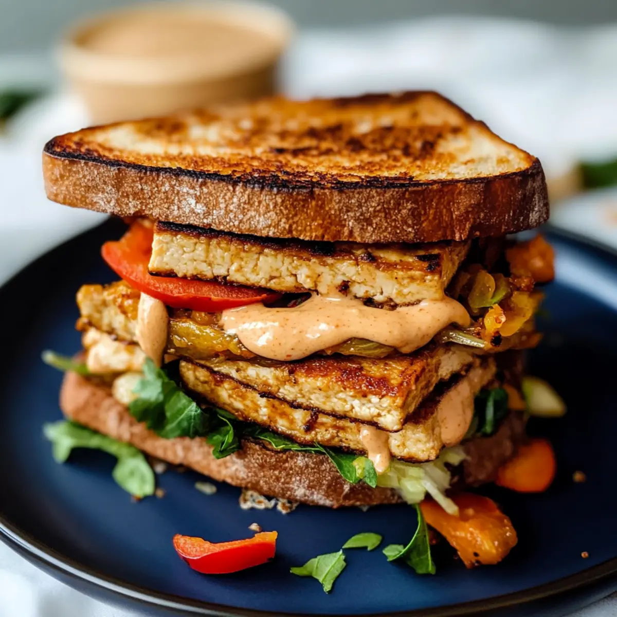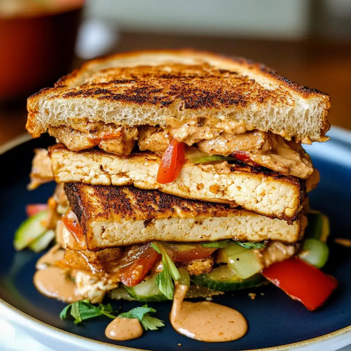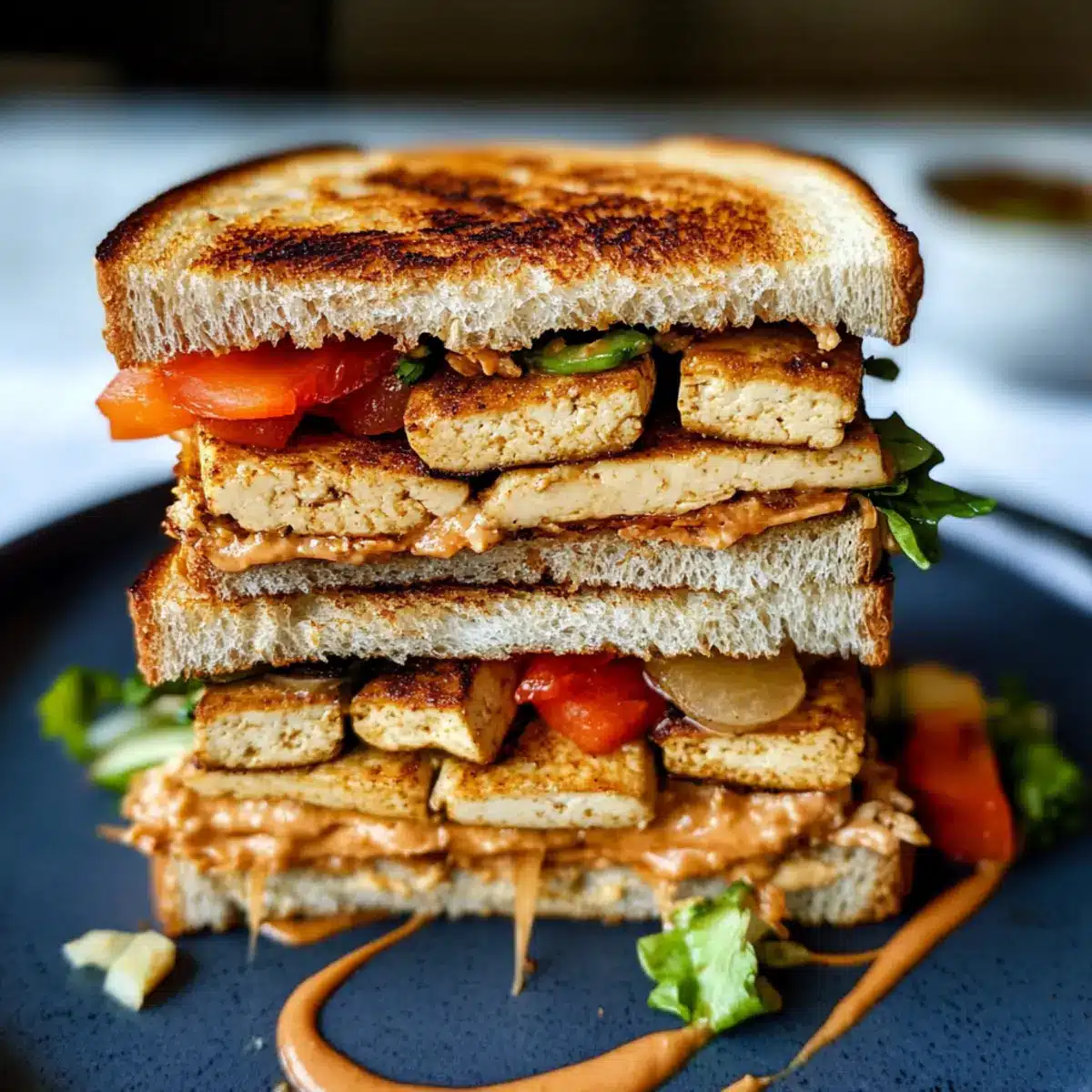 Gegrilltes Tofu-Sandwich mit würziger Tahini-Sauce