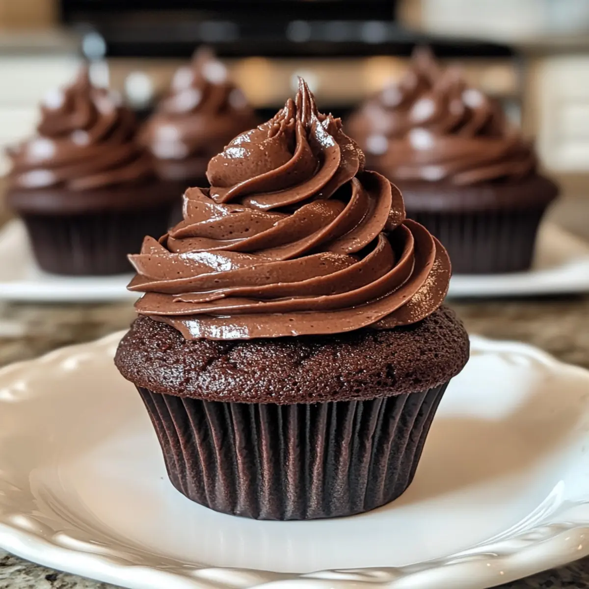 Reichhaltiger Geschmack: Diese Cupcakes bieten die perfekte Kombination aus zartem Schokoladenteig und einer glänzenden, cremigen Ganache.