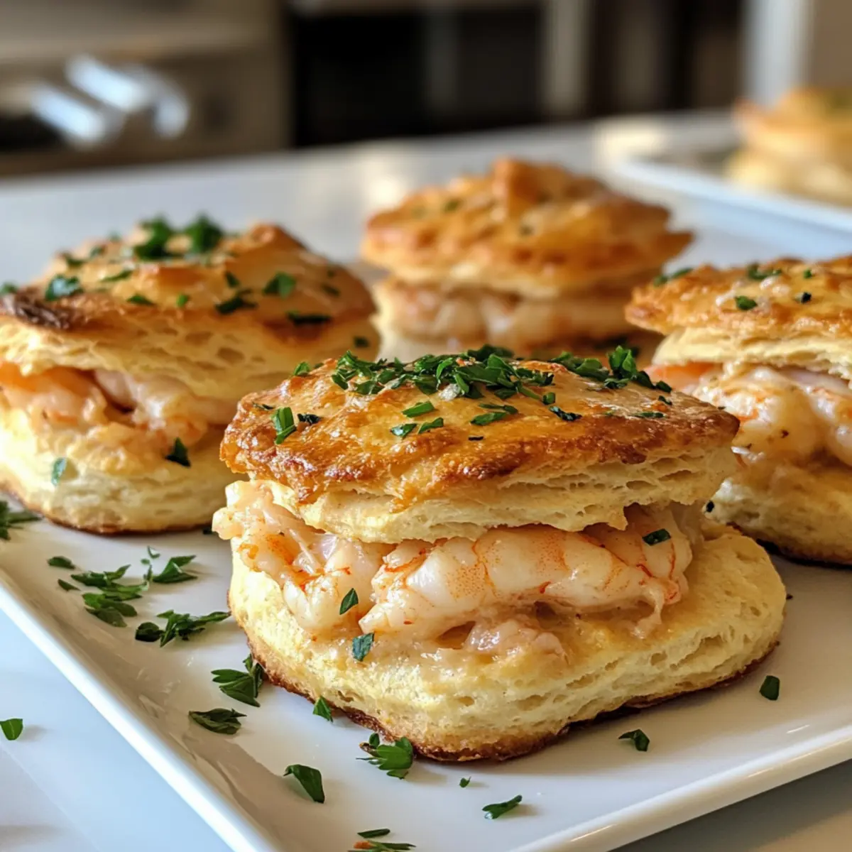 Lassen Sie die Herzhafte Garnelen- und Krabbenscone-Schmelze leicht abkühlen, bevor Sie sie warm servieren. Diese köstlichen kleinen Happen sind ganz nach Ihrem Geschmack und lassen sich wunderbar mit einem frischen Salat oder einer leichten Suppe kombinieren.