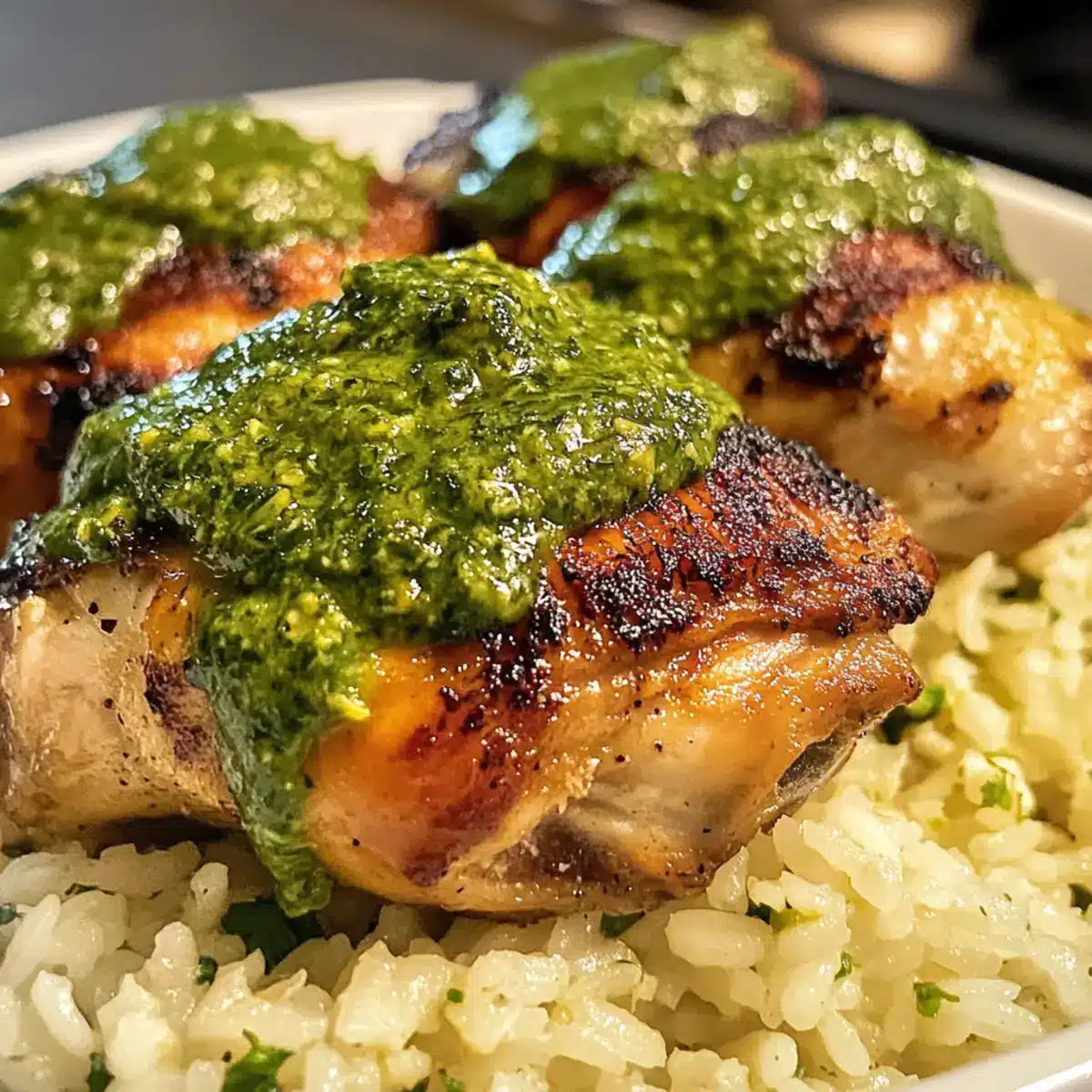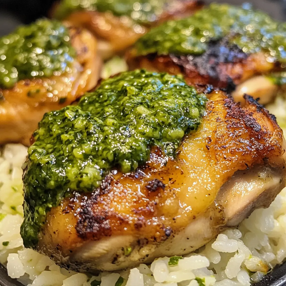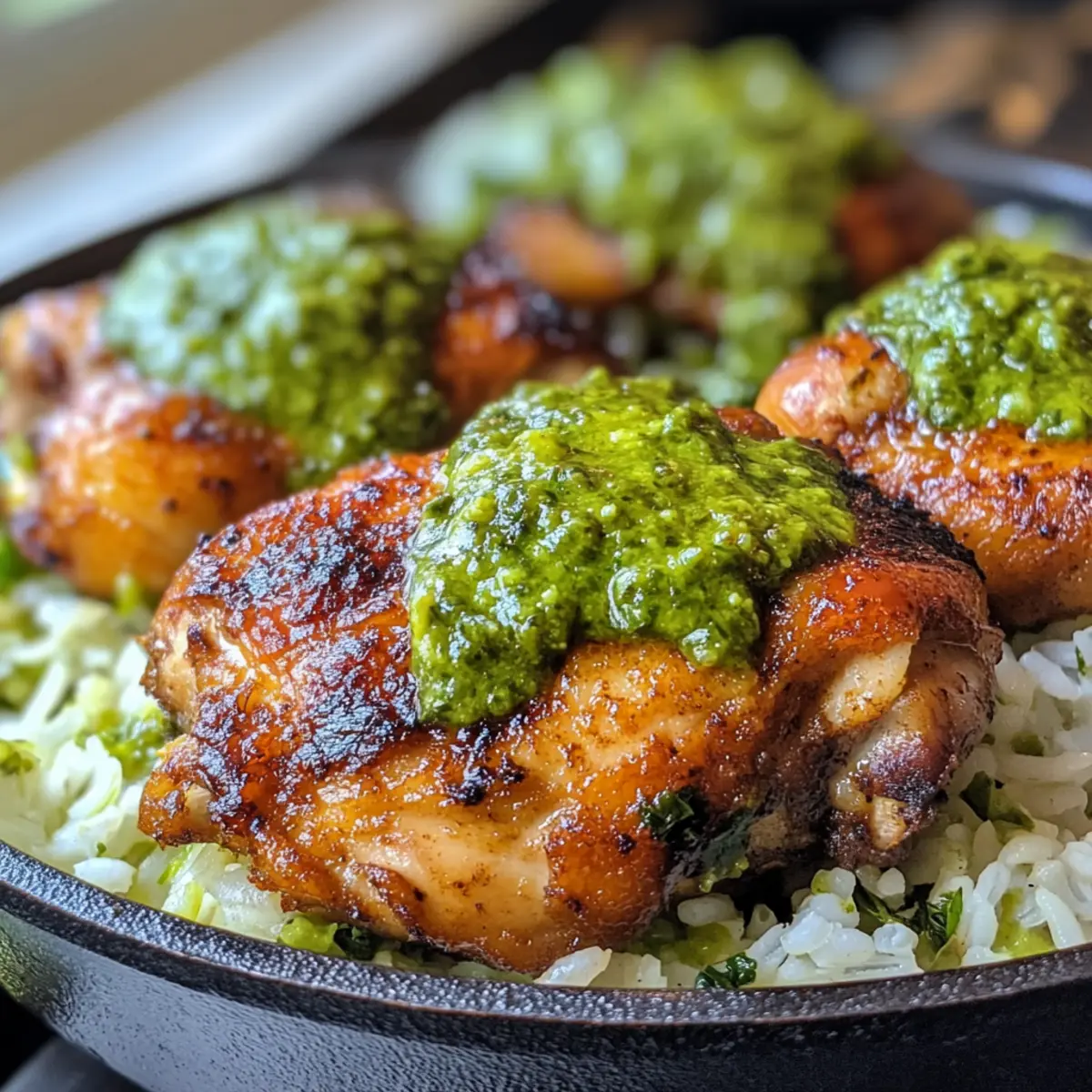 Hühnchen und Reis mit grüner Soße einfach genießen