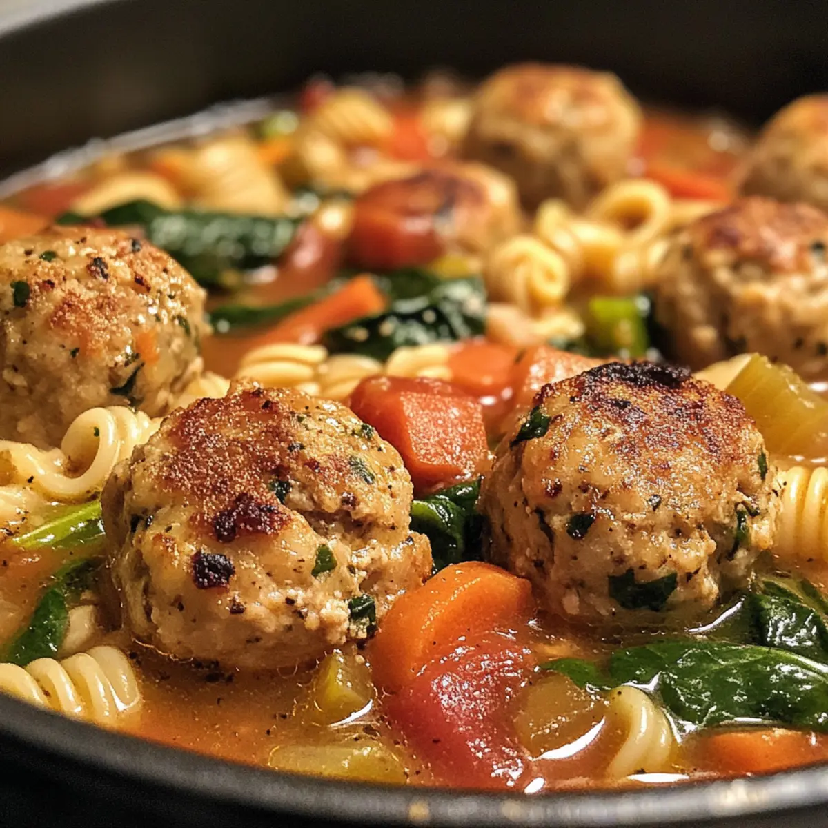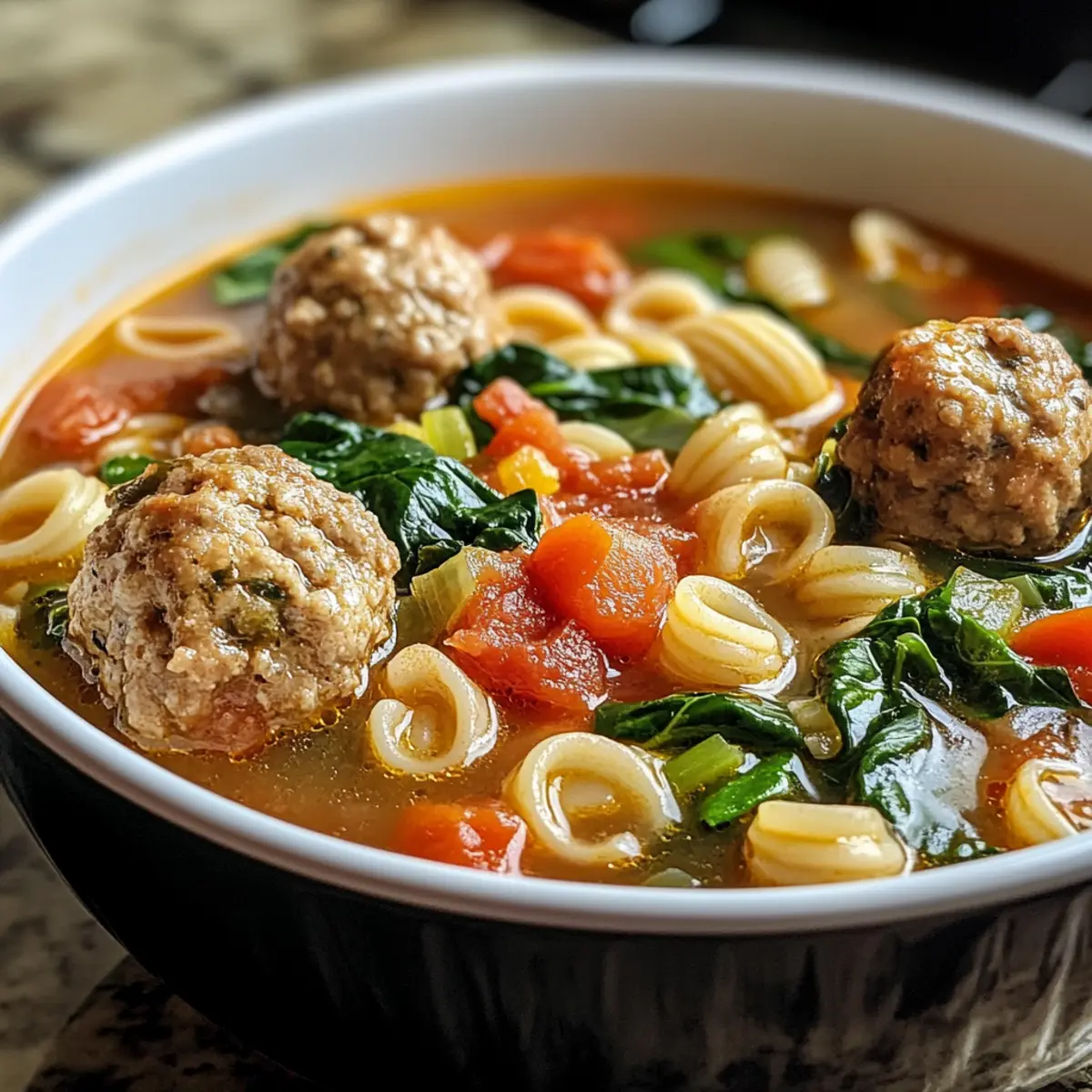 Wenn ich an gemütliches Essen denke, kommt mir sofort der Duft einer warmen Suppe in den Sinn. Diese „Hearty Chicken Meatball Soup with Spinach and Pasta“ ist genau das, was ich brauche, um einem hektischen Tag zu entfliehen. Mit saftigen Fleischbällchen, frischem Gemüse und einem Hauch von Pasta ist dieses Rezept nicht nur unglaublich sättigend, sondern zudem auch super anpassungsfähig – perfekt für jede Diät, einschließlich glutenfreier Optionen. So wird diese Suppe zum idealen Gericht für stressige Wochentage oder wenn spontane Gäste eingeladen werden. Ich freue mich darauf, die Vorzüge dieser herzhaft-warmen Suppe mit euch zu teilen – seid ihr bereit für eine Geschmacksexplosion?