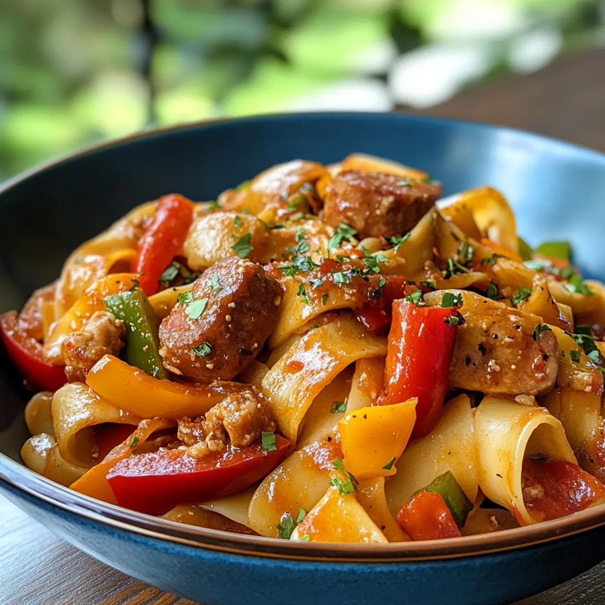 Reichhaltiger Geschmack: Die Kombination von herzhaftem italienischen Wurst und frisch gebratenem Gemüse in einer würzigen Knoblauch-Soße sorgt für eine Geschmacksexplosion, die Ihre Sinne verführt.