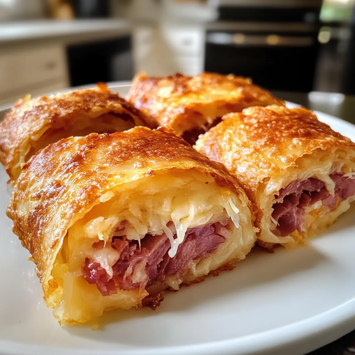 Keto Knusprige Reuben Roll-Ups für den perfekten Snack