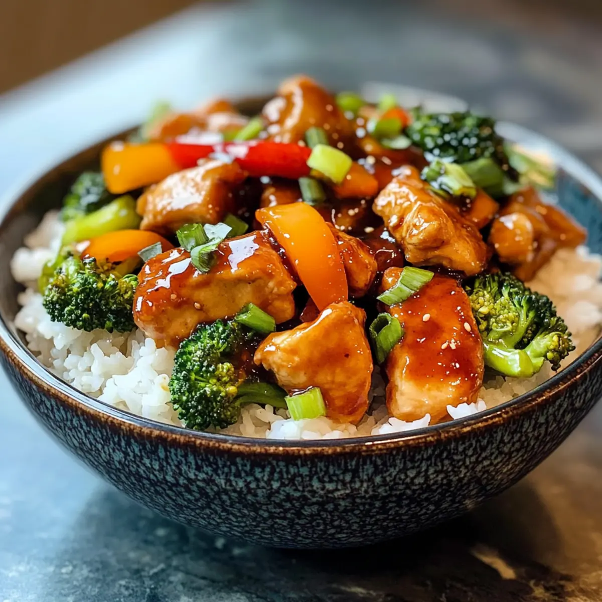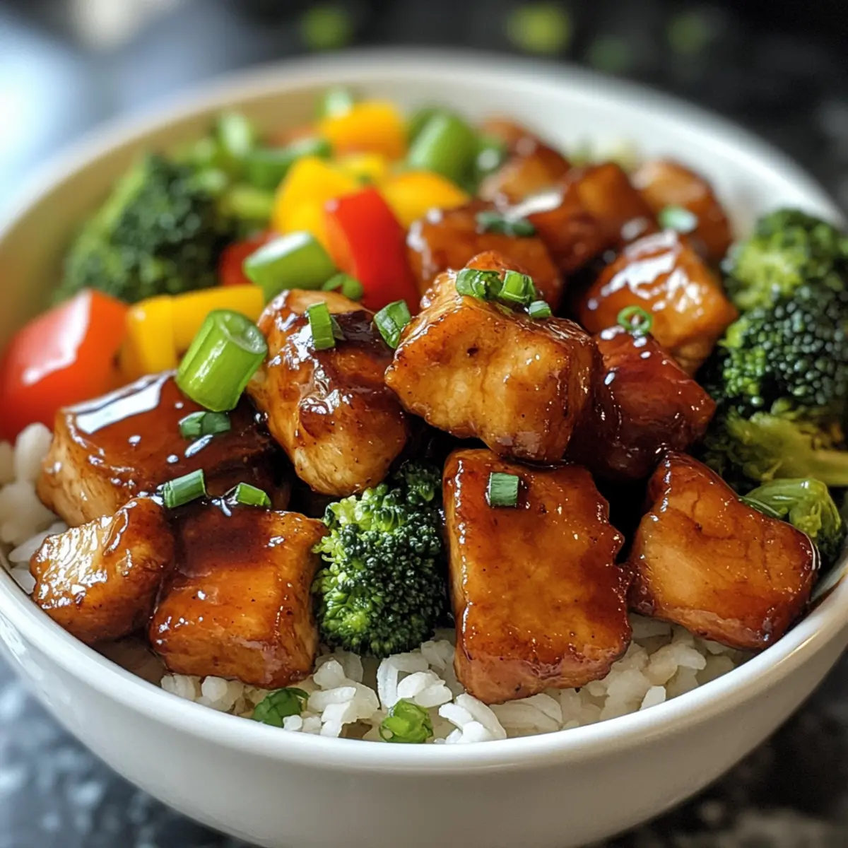 Klebrige Hähnchen-Reisbowl für schnelle Abende