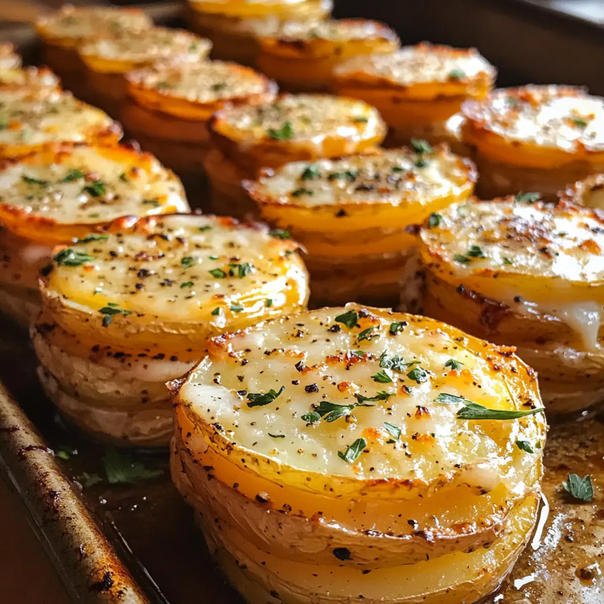 Knoblauch Parmesan Kartoffelstapel für Genießer