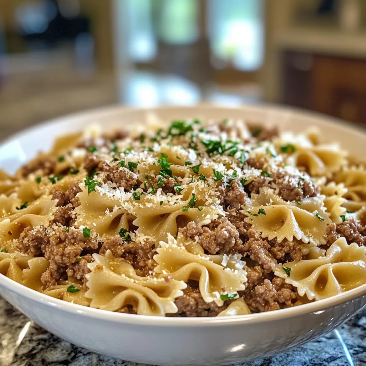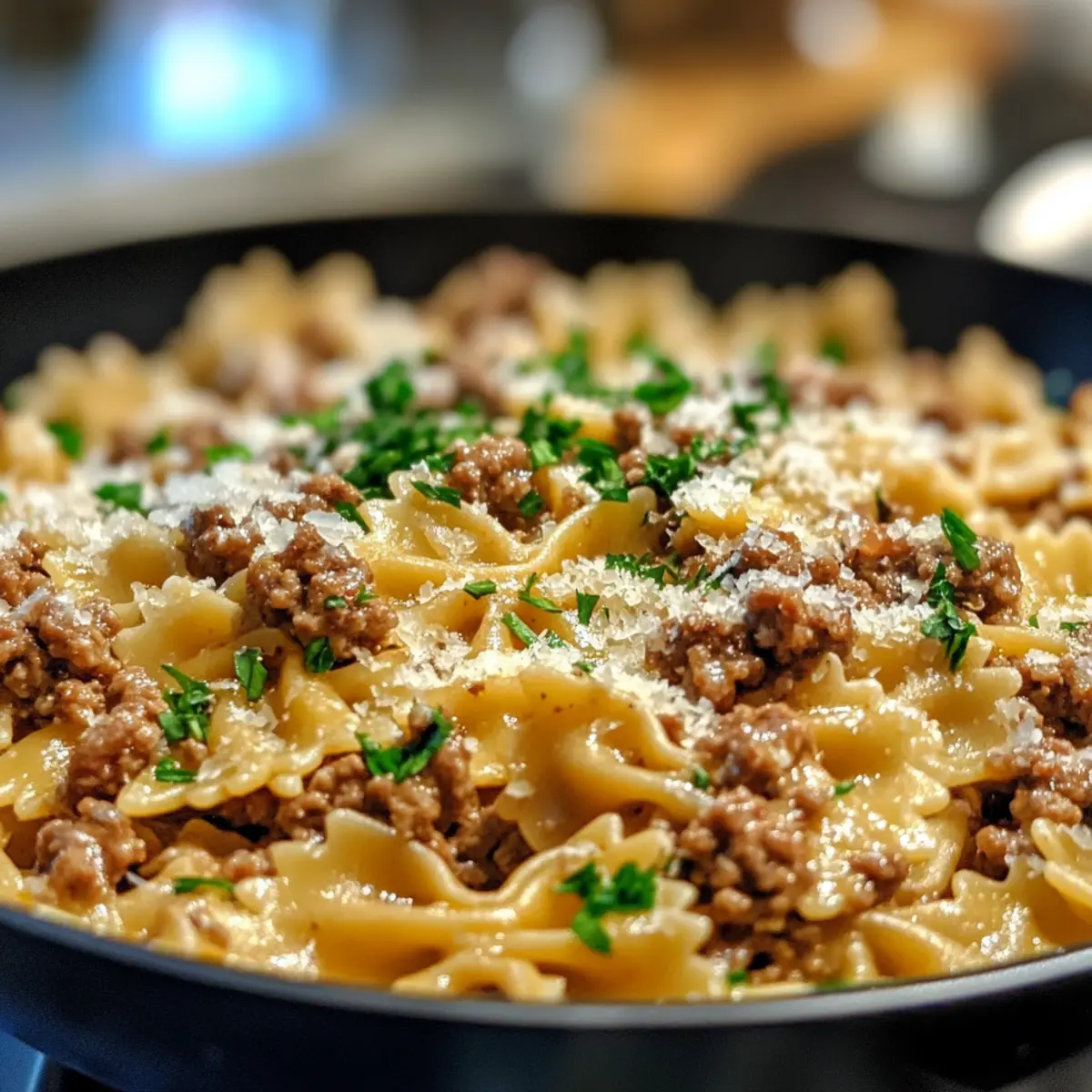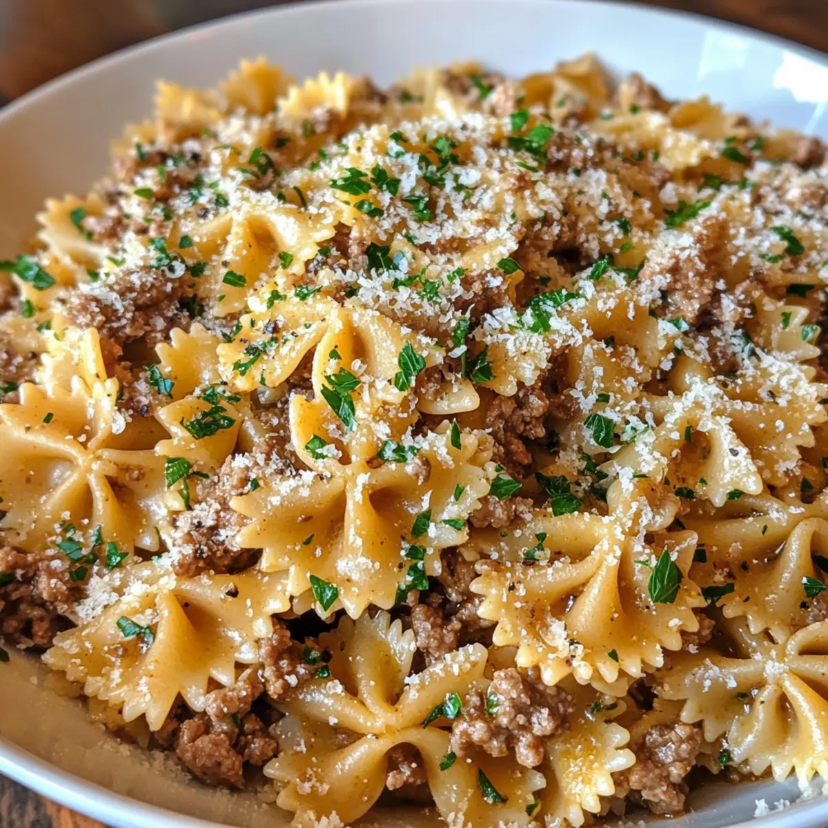 Knoblauchbutter-Schmetterlingsnudeln mit Hackfleisch schnell genießen