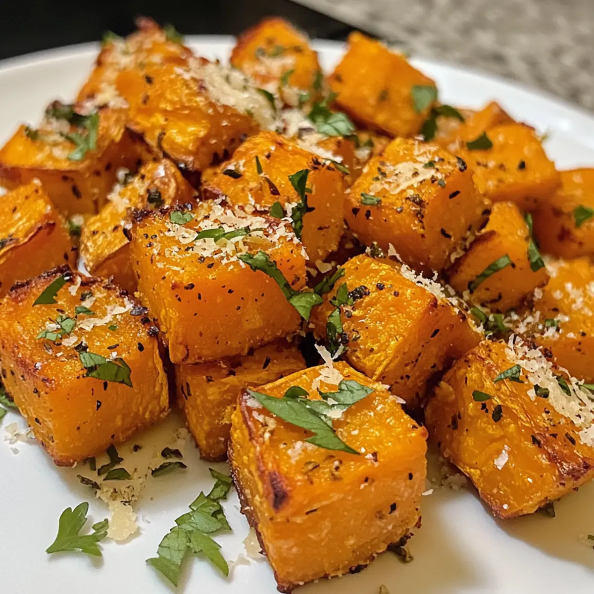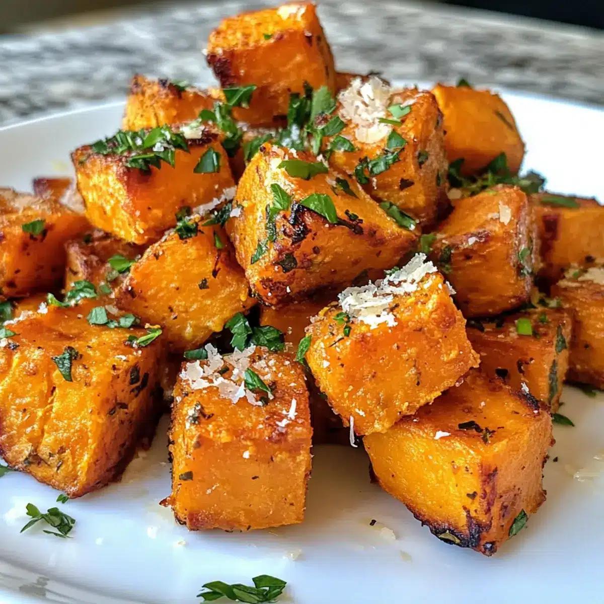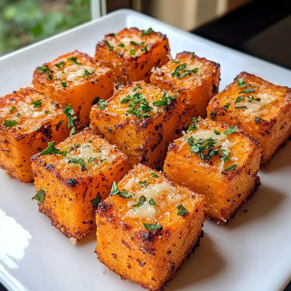 Knusprige gebackene Süßkartoffelstücke mit Kräuterbutter