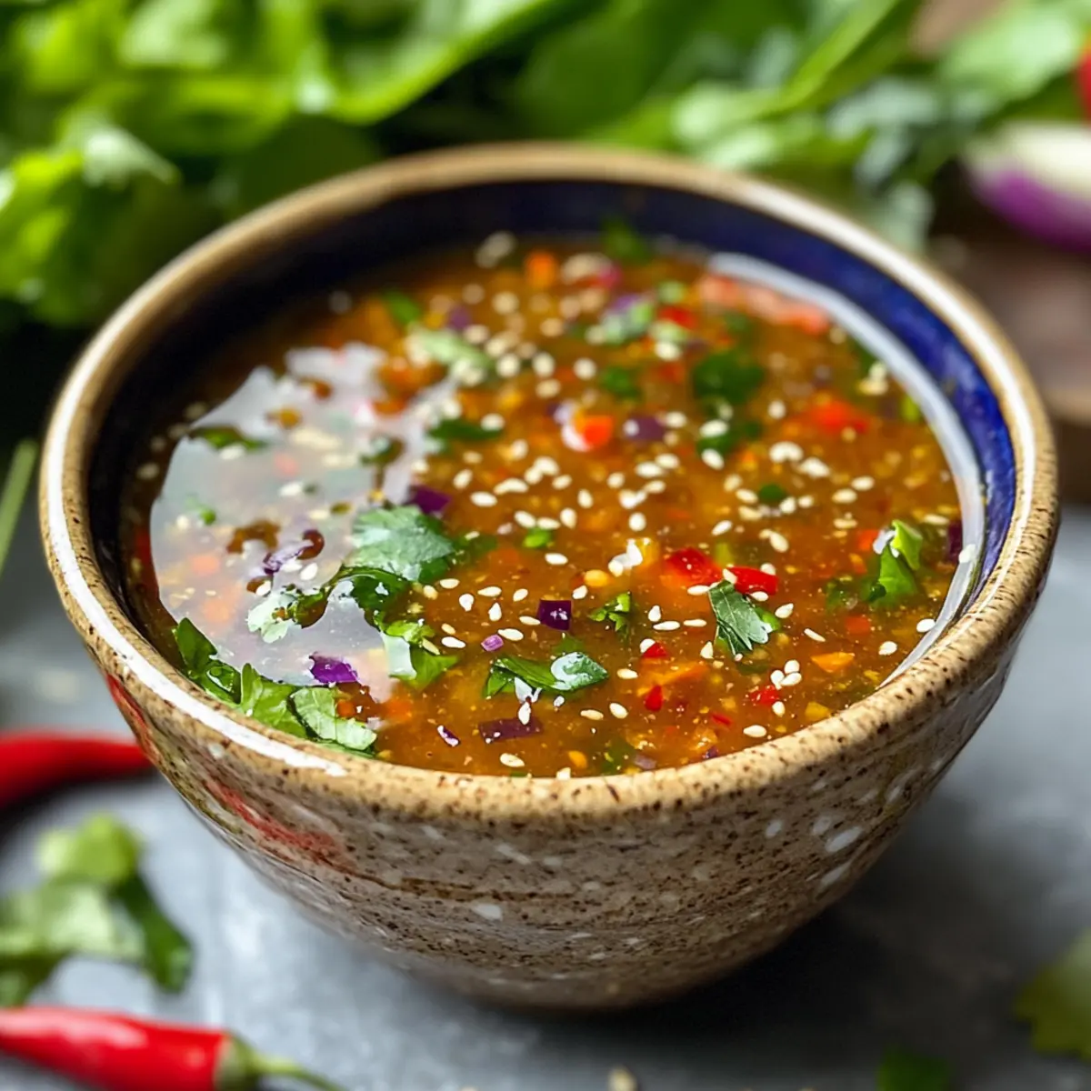 - Süßer Chili-Dip – ergänzt die knusprigen Lumpia perfekt; achte auf eine gute Balance zwischen Süße und Schärfe.