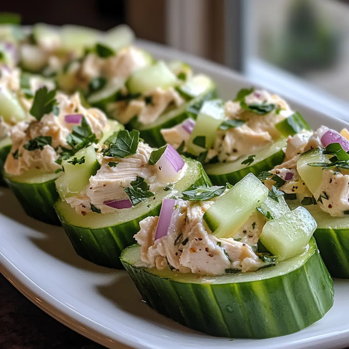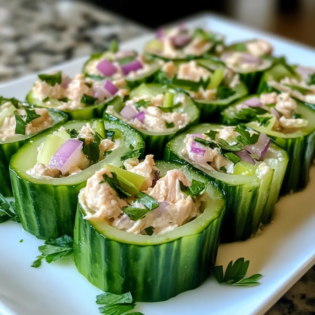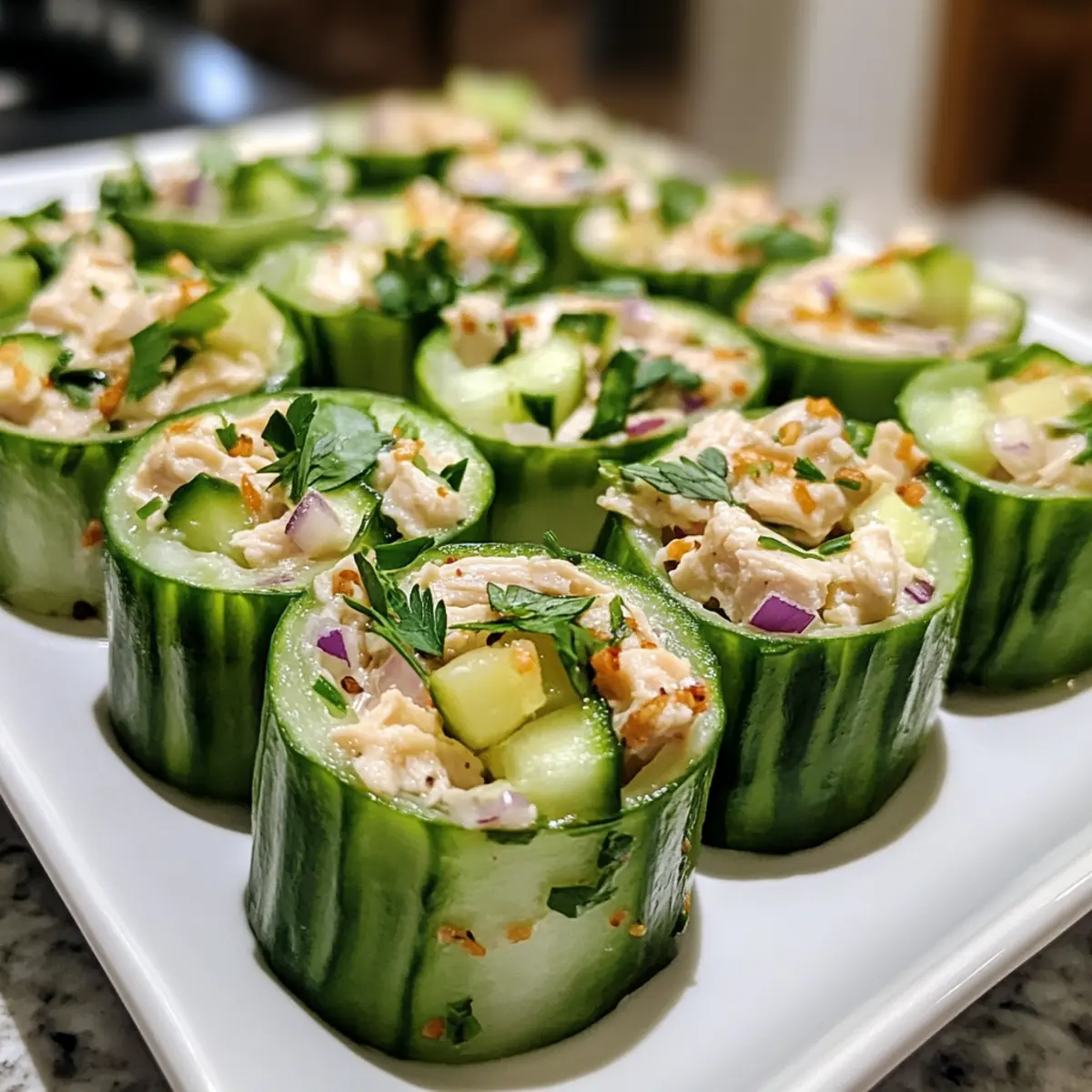 Knuspriger Hühnchen-Salat Gurken-Rollen für Schnellzünder