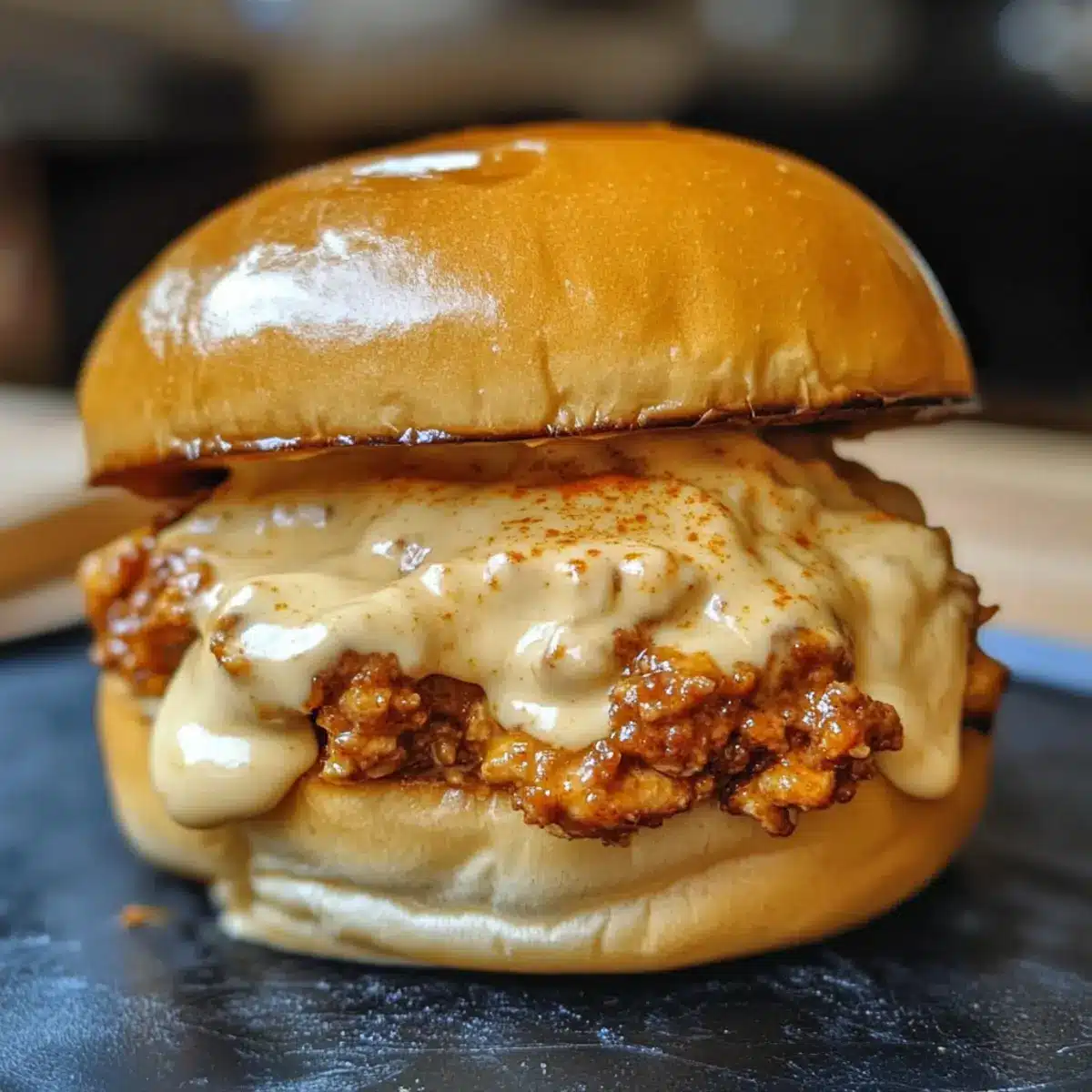 - Anrichten: Legen Sie großzügig die kreolische Hähnchenmischung auf die gerösteten Brötchen. Gießen Sie die cremige Käsauce darüber und setzen Sie die obere Brötchenhälfte darauf. Servieren Sie die Kreolischen Hähnchen Sloppy Joes sofort und genießen Sie dieses köstliche Gericht!
