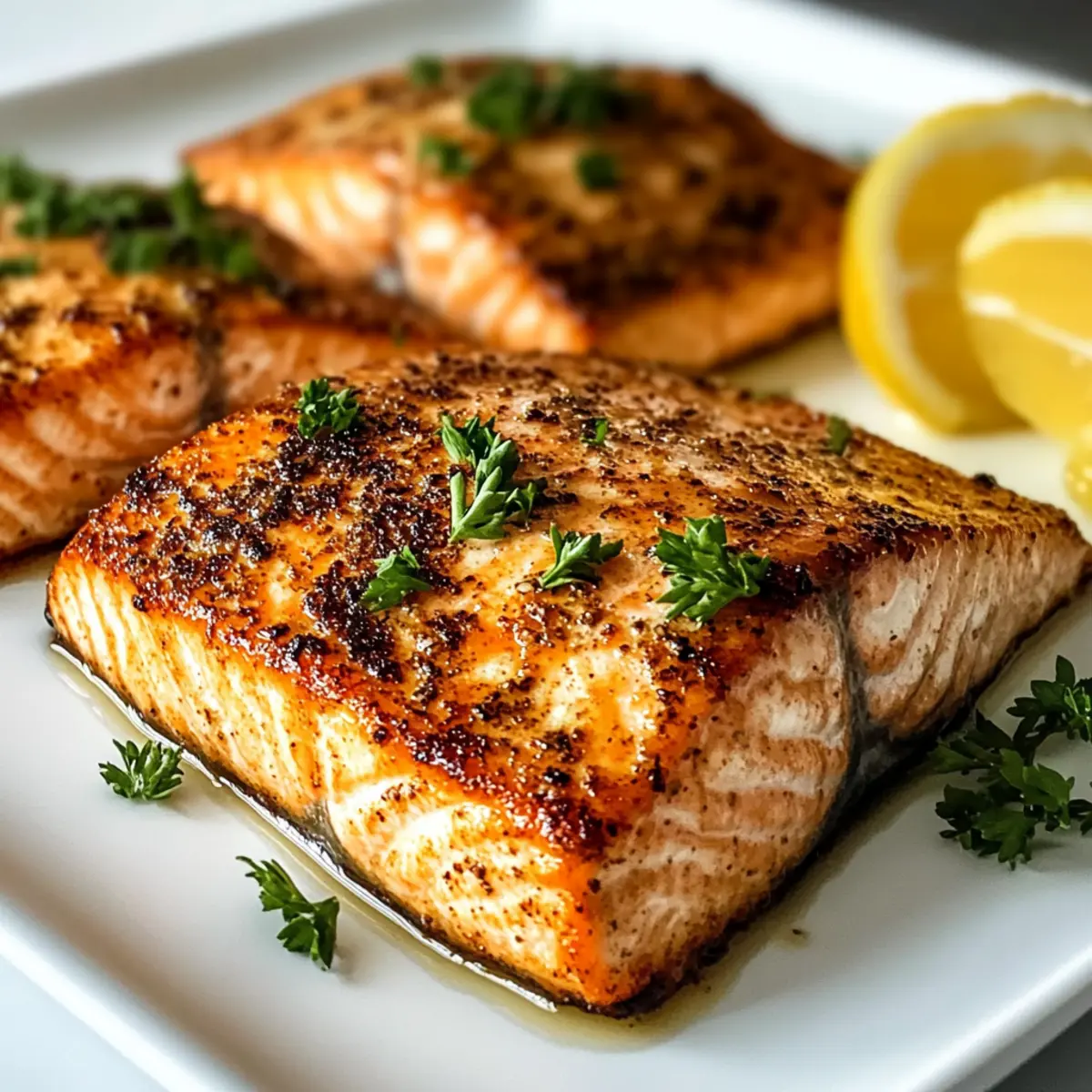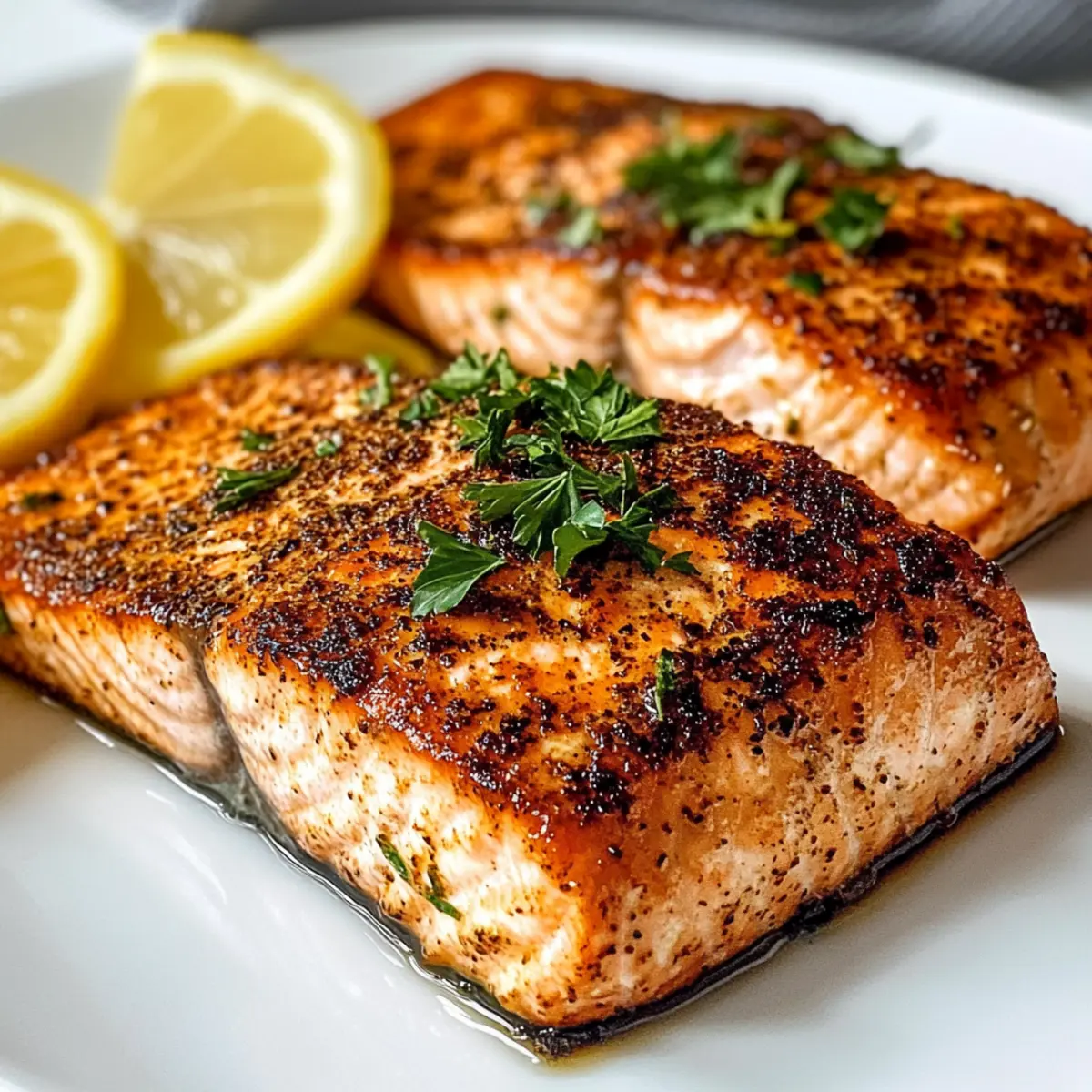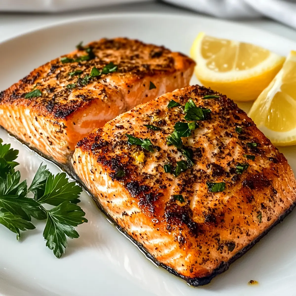Trocken tupfen: Stelle sicher, dass die Lachsfilets trocken gepatzt sind, um eine optimale Gewürzhaftung und eine knusprige Oberfläche zu erreichen.