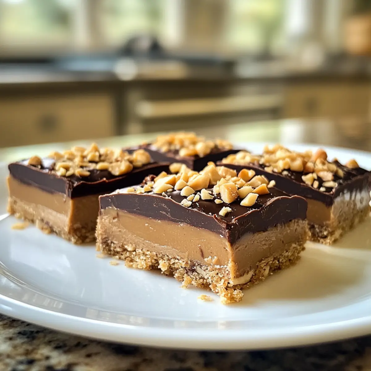 Einfachheit pur: Die Zubereitung erfordert nur wenige Schritte und ist perfekt für jede Kochstufe, selbst für Anfänger. Geschmacksexplosion: Die Kombination aus cremiger Erdnussbutter und zartbitterer Schokolade sorgt für ein Geschmackserlebnis, das niemand ablehnen kann. Flexible Variationen: Diese Riegel lassen sich leicht anpassen – probiere unterschiedliche Nussbutter oder toppings, um deine eigene Version zu kreieren. Zeitersparnis: Mit einer schnellen Vorbereitungszeit sind sie die ideale Lösung für spontane Snacks oder Gäste. Gesunde Nascherei: Vollgepackt mit Proteinen und gesunden Fetten sind sie ein befriedigender Genuss, der nicht nur gut schmeckt, sondern auch nährend ist. Perfekte Portionen: Ideal für Lunchpakete oder als süßer Abschluss eines Essens – jeder wird diese Riegel lieben!